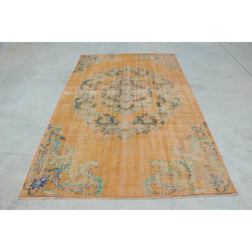 Alfombra Turca Vintage de 5.3x9.1 pies (162x278 cm), Alfombra Oriental Naranja