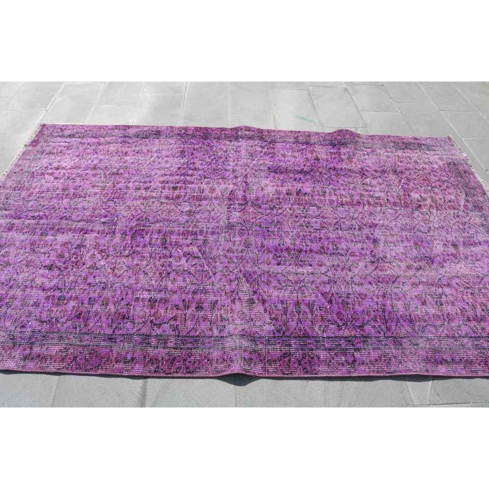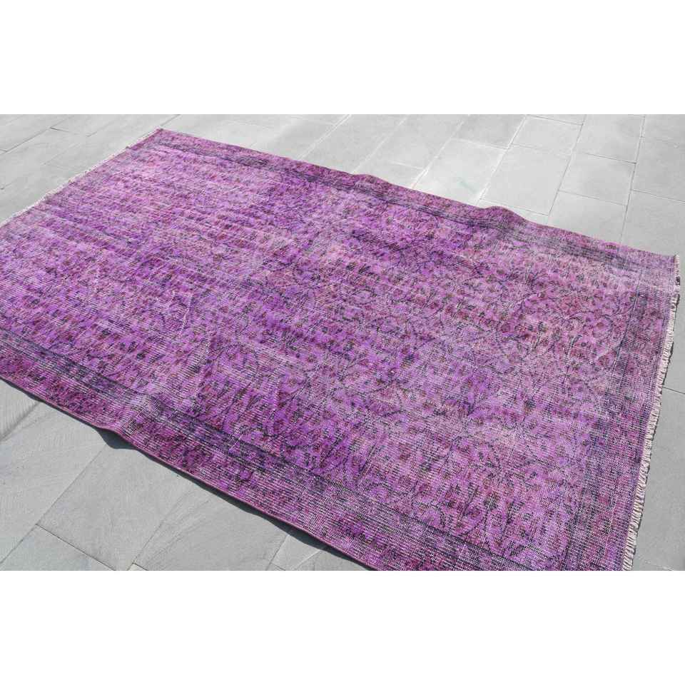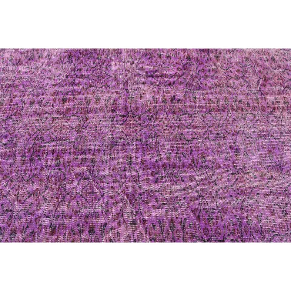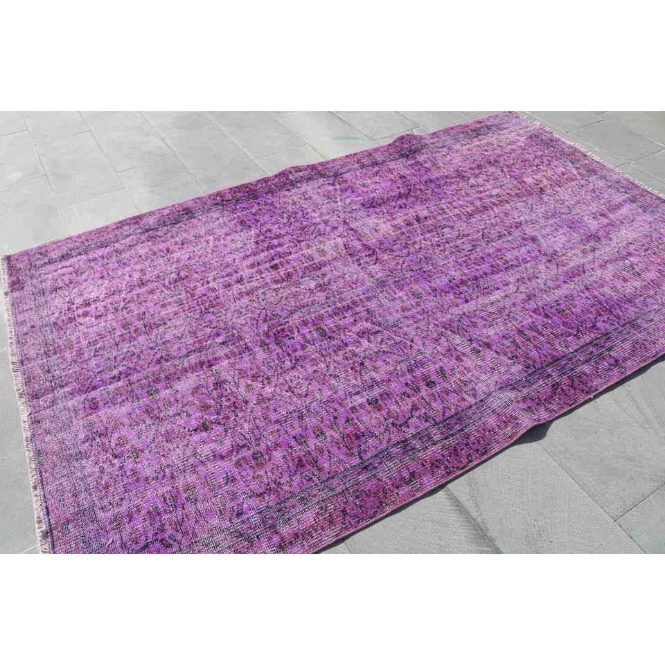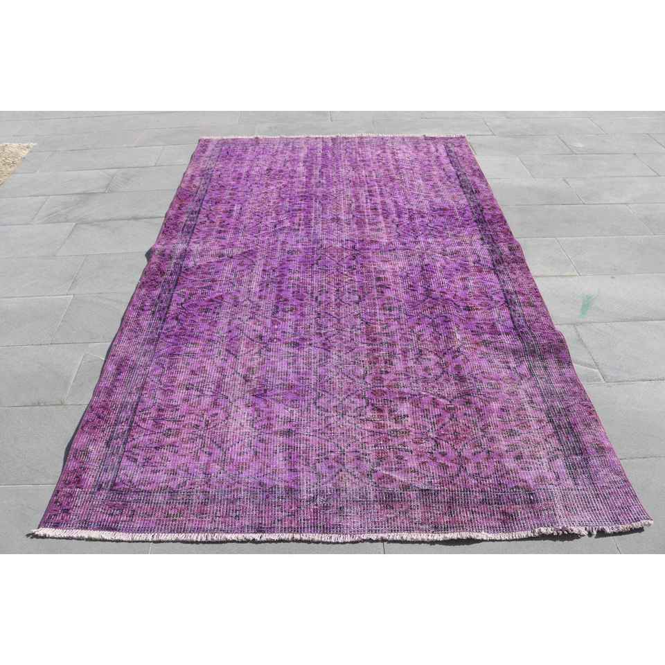 Alfombra Turca Vintage de Lana 5.4x5.3 pies (164x161 cm) Morada con Diseño de Patchwork, Base de Látex, Ecológica