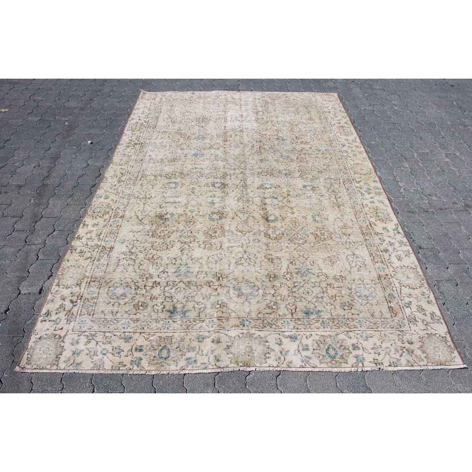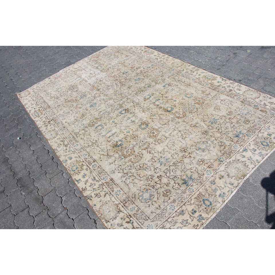 Alfombra Turca Vintage, Alfombra de 5.4x8.2 pies, Alfombra Persa de Lana Azul y Blanca