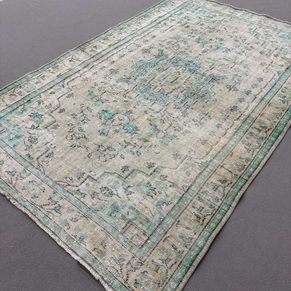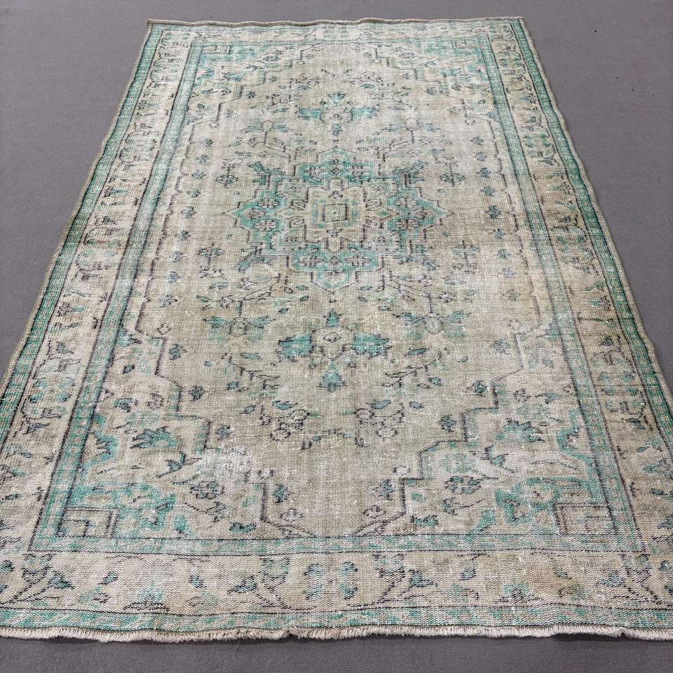 Alfombra Turca Vintage de 5.9x9 pies, Alfombra Oriental Azul de Lana
