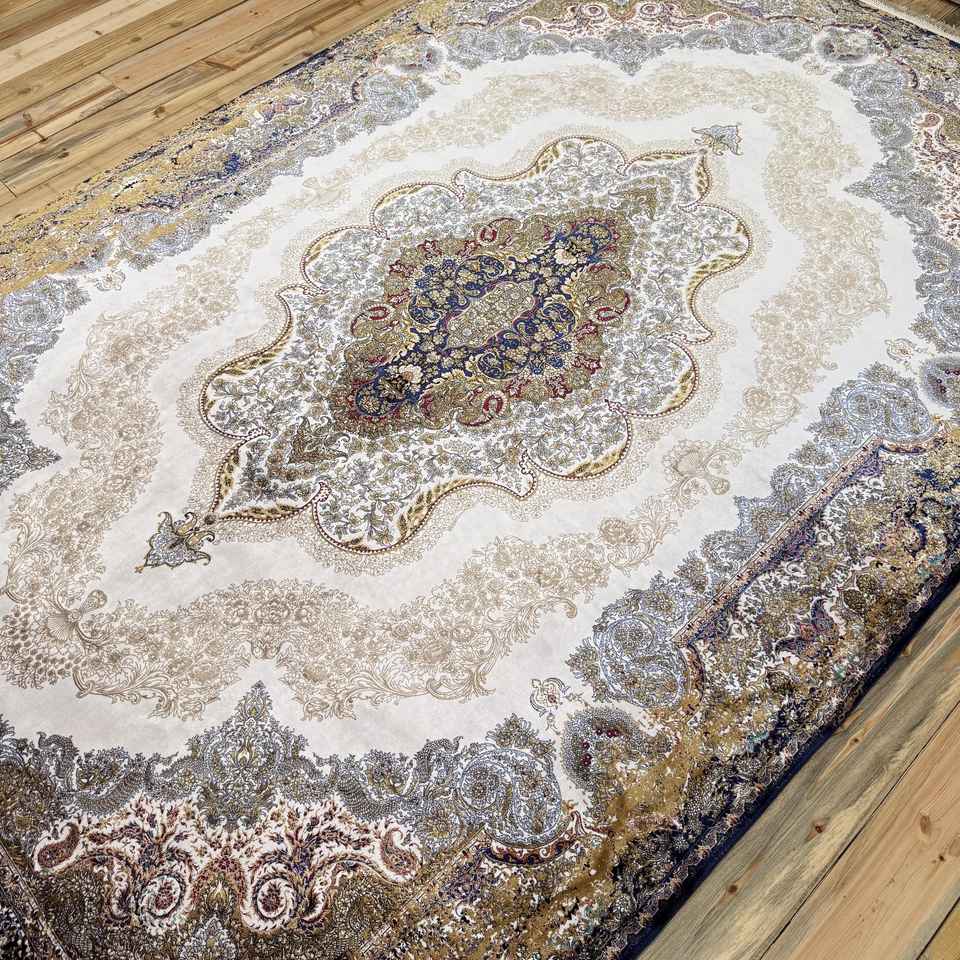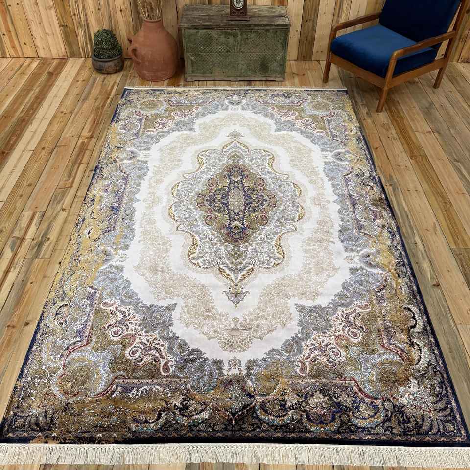 Alfombra Turca Vintage de 6.4x9.9 pies (195x303 cm), Alfombra de Lana Azul con Diseño Floral