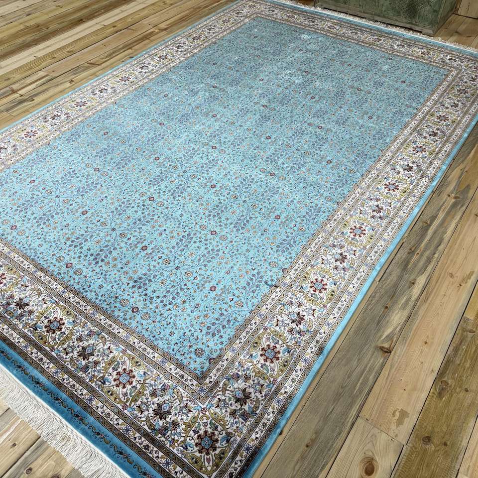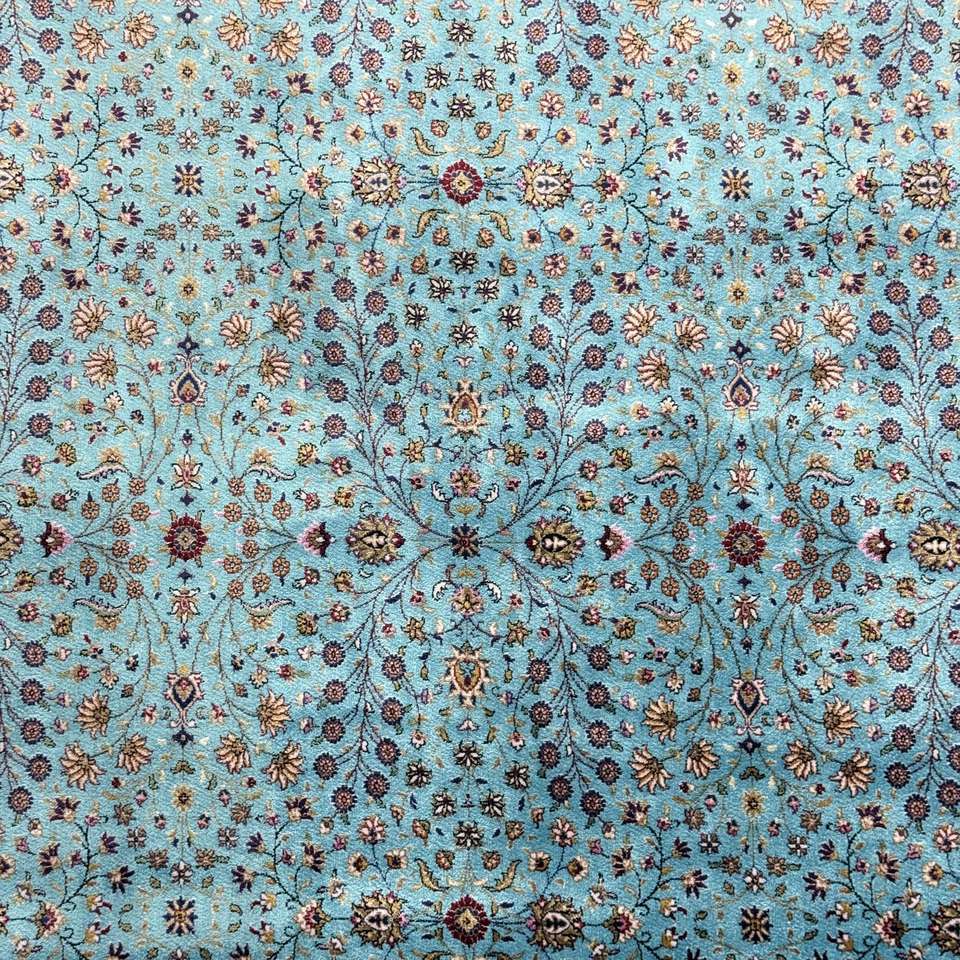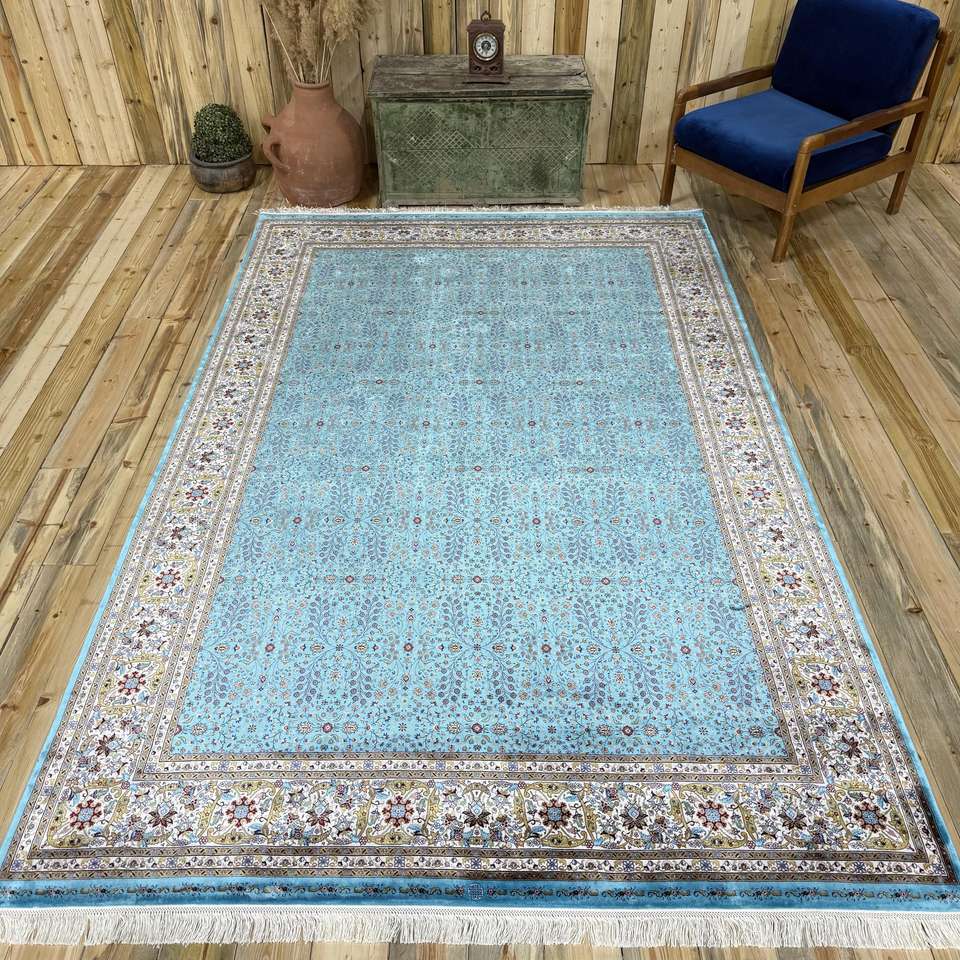 Alfombra Turca Vintage de 6.4x9.9 pies (195x303 cm), Alfombra de Seda Azul