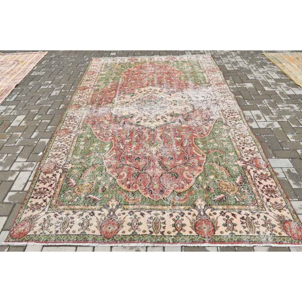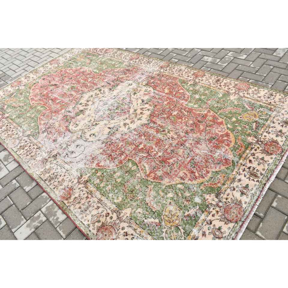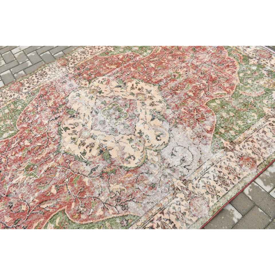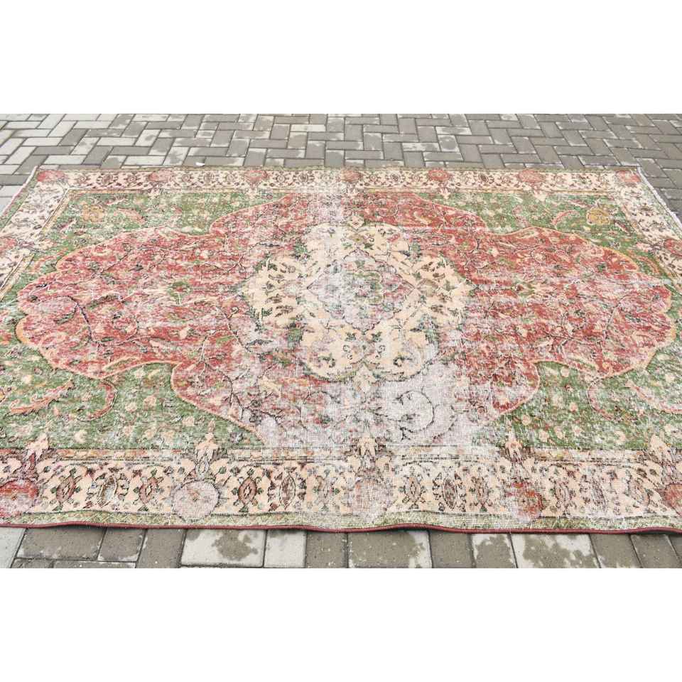 Alfombra Turca Vintage, Alfombra Grande de 6x9.9 pies, Alfombra de Lana con Diseño de Plantas y Árboles Rojos y Verdes