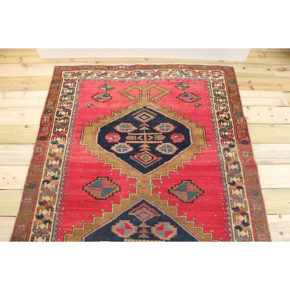 Alfombra Turca Vintage, Grande, 4.2x9.6 pies (127x292 cm), Alfombra de Lana con Diseño Floral Rojo