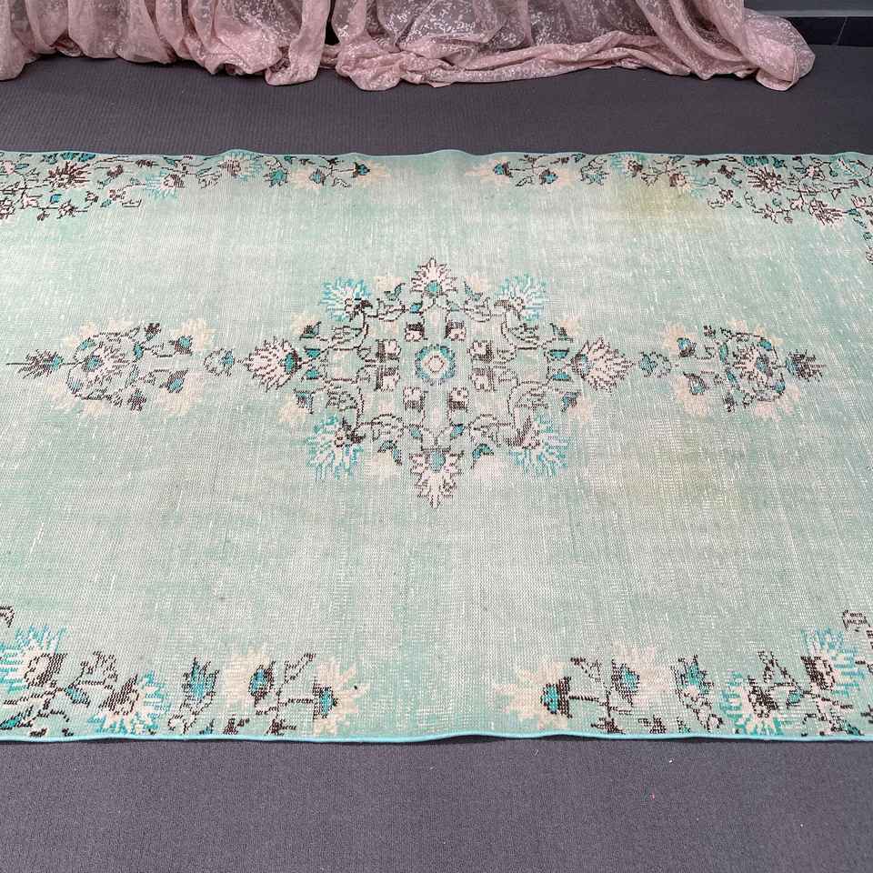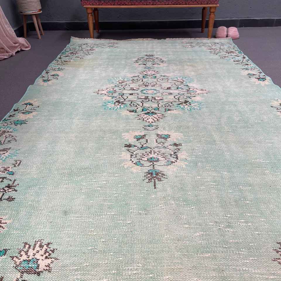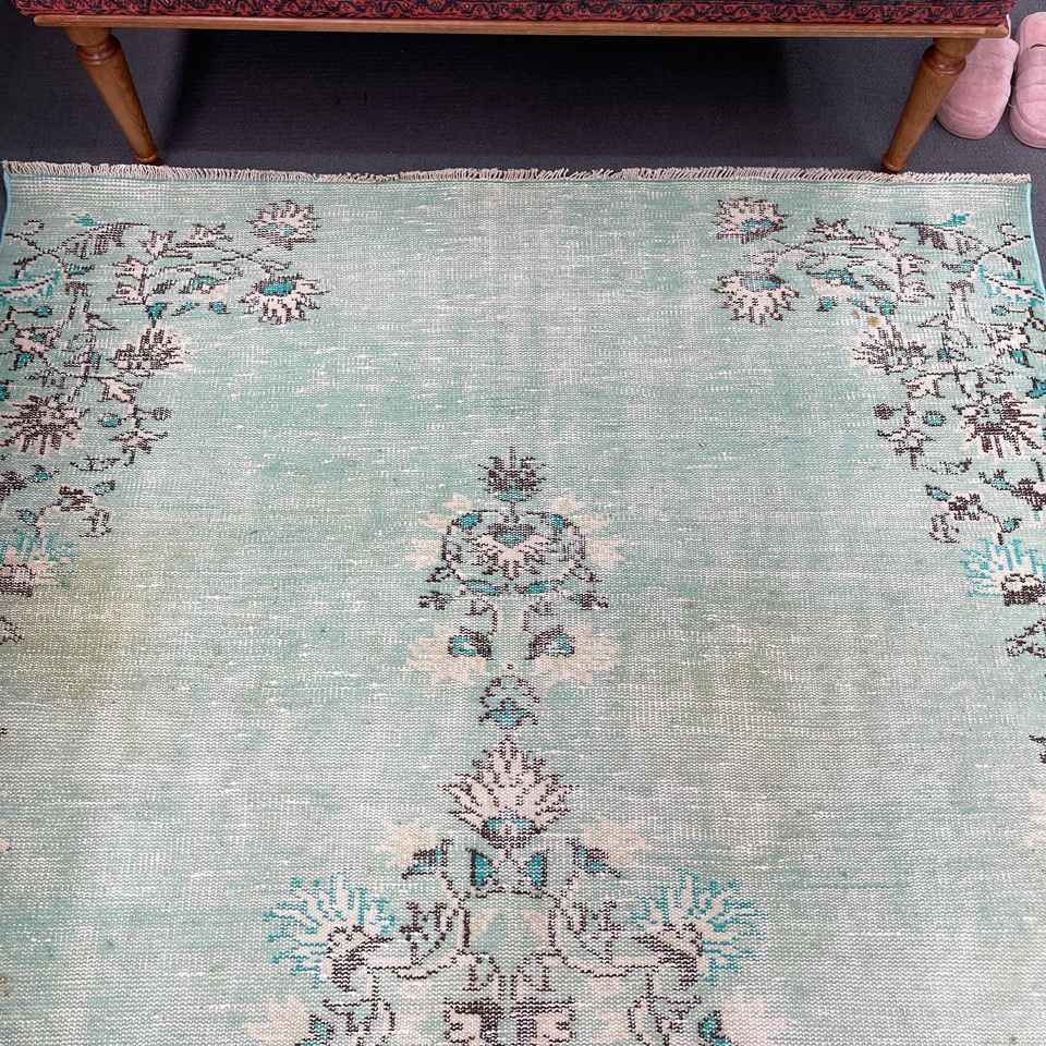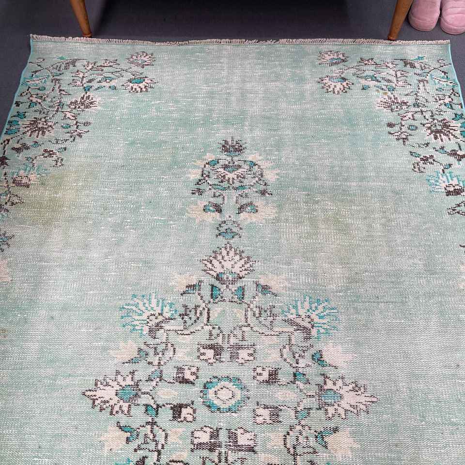 Alfombra Turca Vintage, Alfombra Grande de 4.8x8.4 pies (145x256 cm), Alfombra de Lana con Puntos Azules
