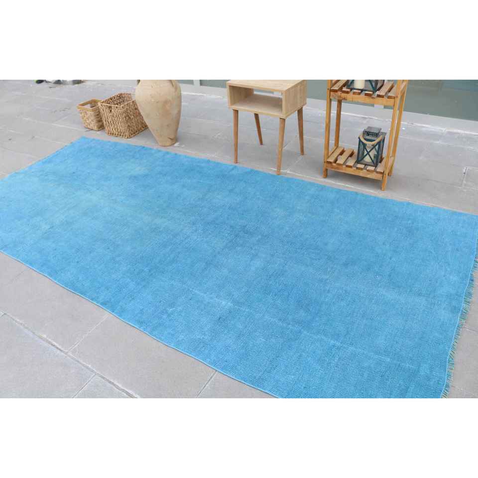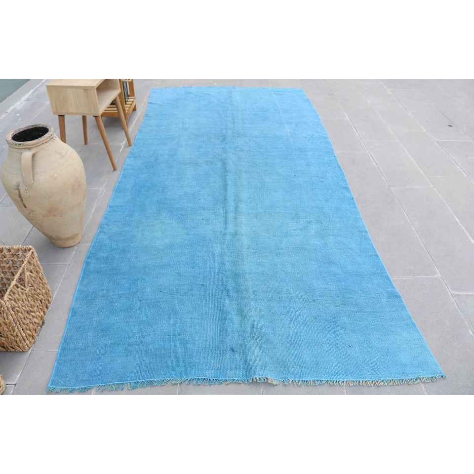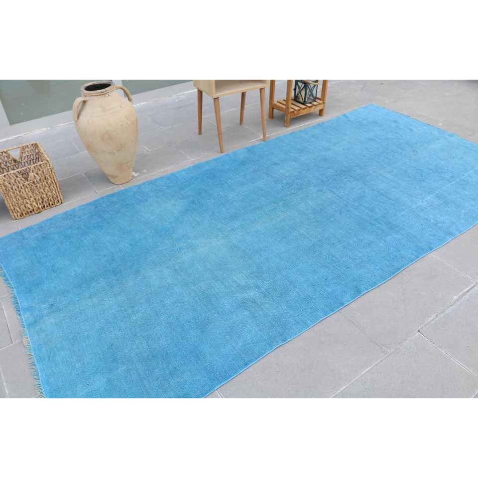 Alfombra Turca Vintage, Alfombra Grande de 4.9x10.4 pies (150x316 cm), Alfombra de Lana Azul Ombré