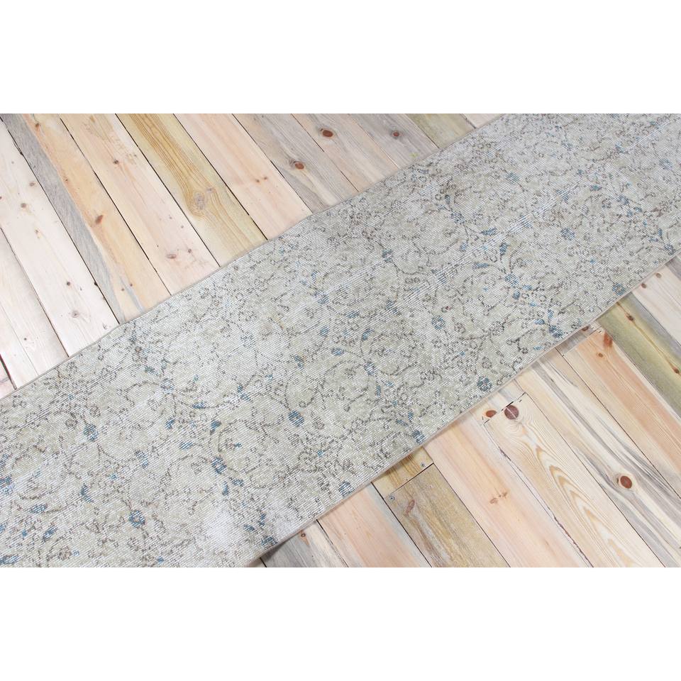 Alfombra Turca Vintage de 2.2x8.4 pies, Alfombra Beige con Diseño Floral de Lana