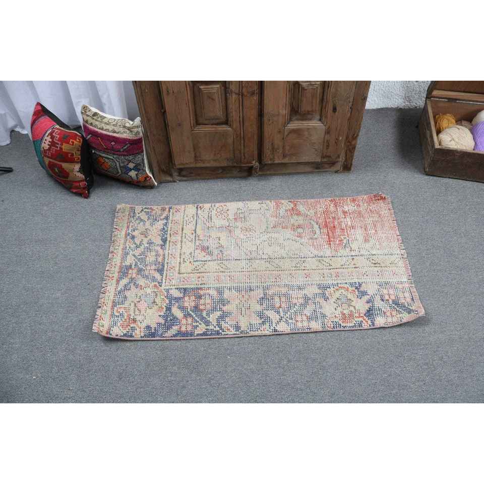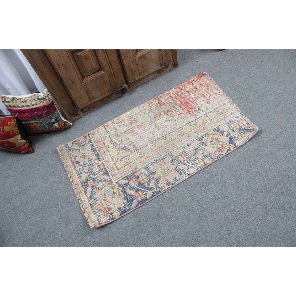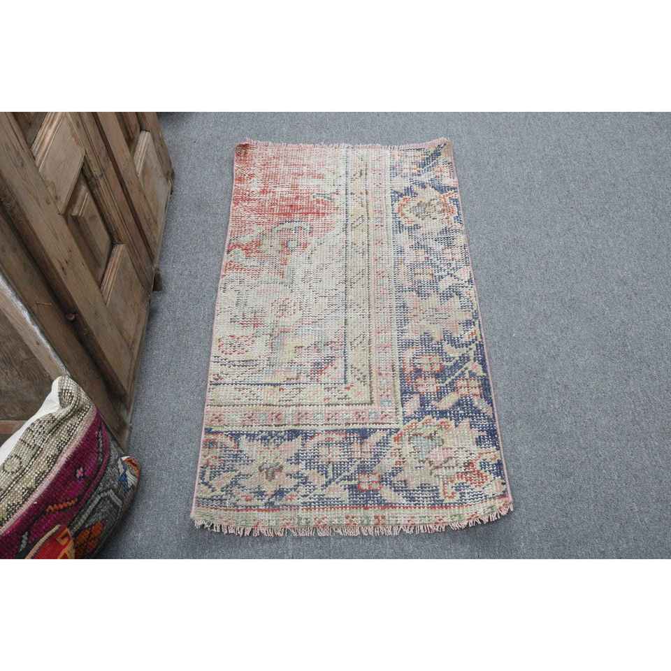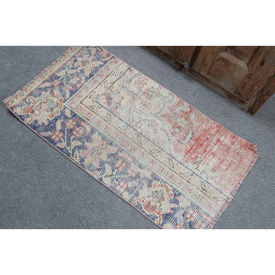 Alfombra Turca Vintage, Pequeña, 1.9x3.6 pies (59x109 cm), Alfombra Azul de Lana Persa