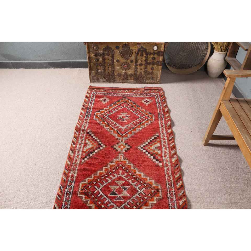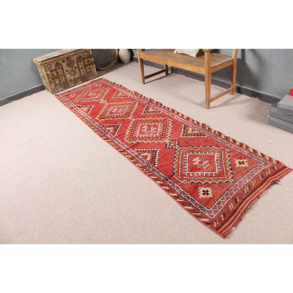 Alfombra Turca Vintage de 2.7x10.2 pies, Alfombra Floral Roja Naranja