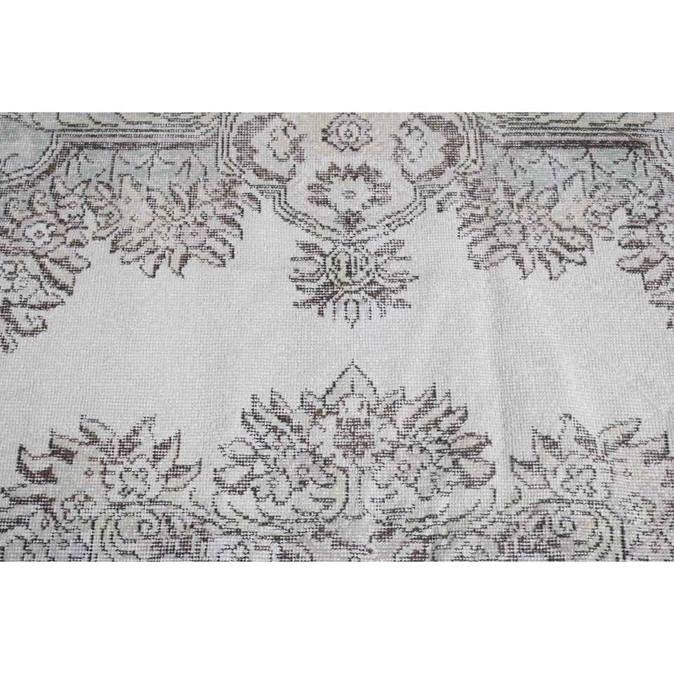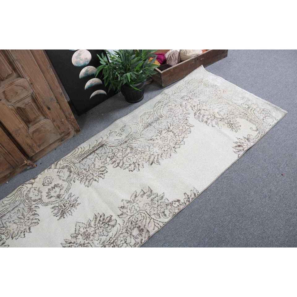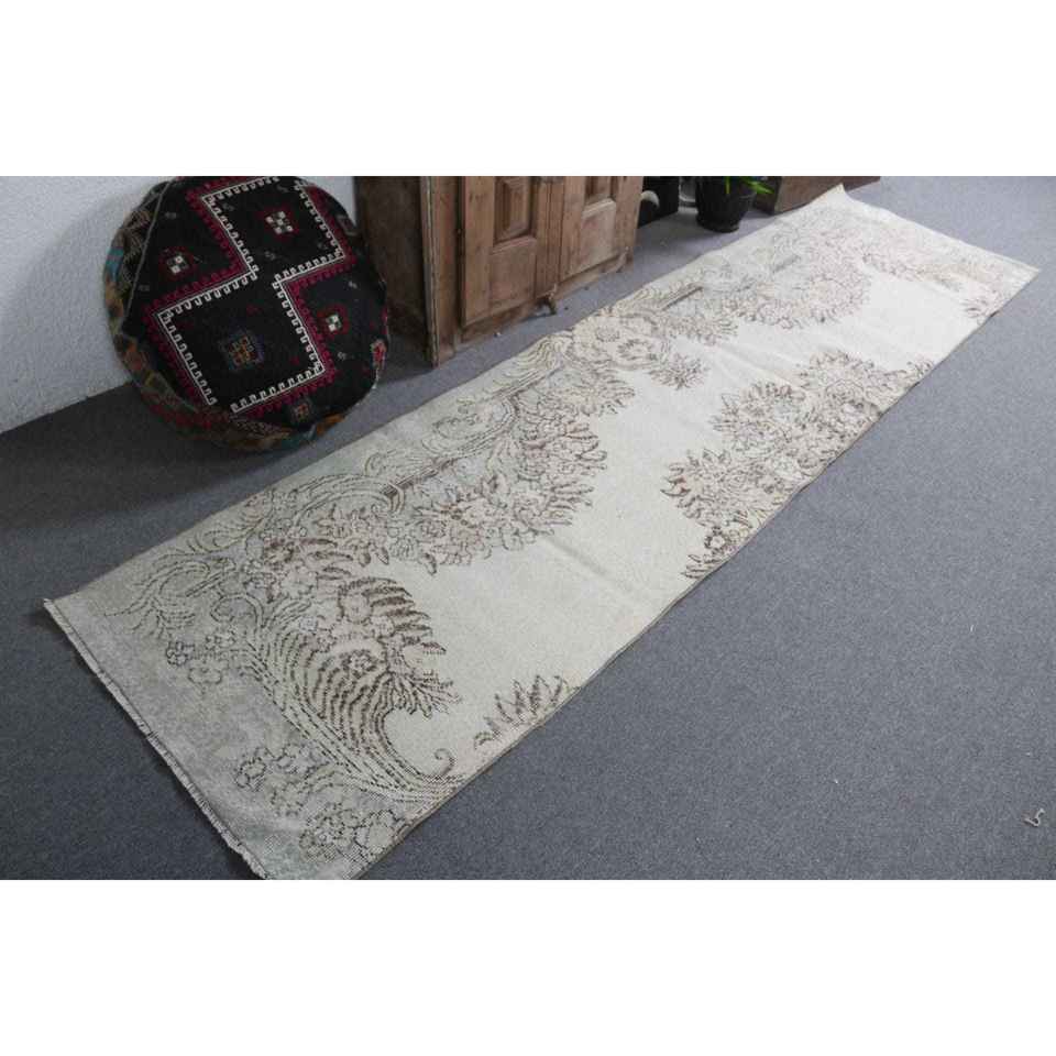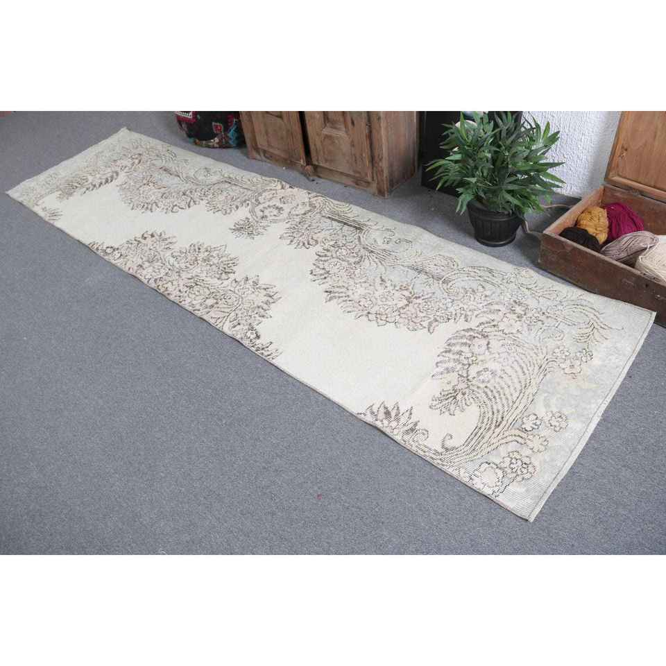 Alfombra Turca Vintage de 2.7x10.2 pies, Alfombra Blanca Gris con Estampado Animal