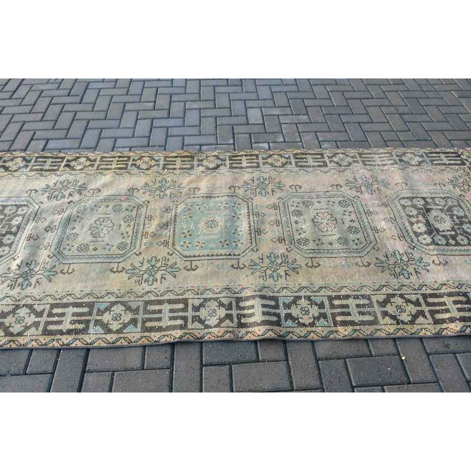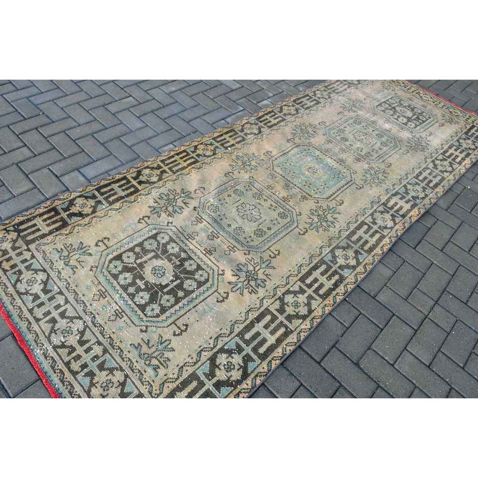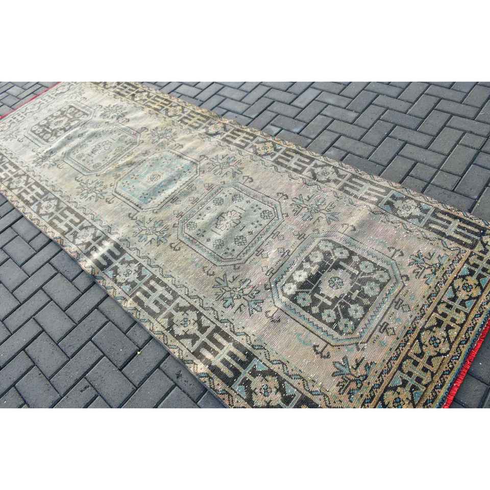 Alfombra Turca Vintage de Lana Azul, 4x10.4 pies