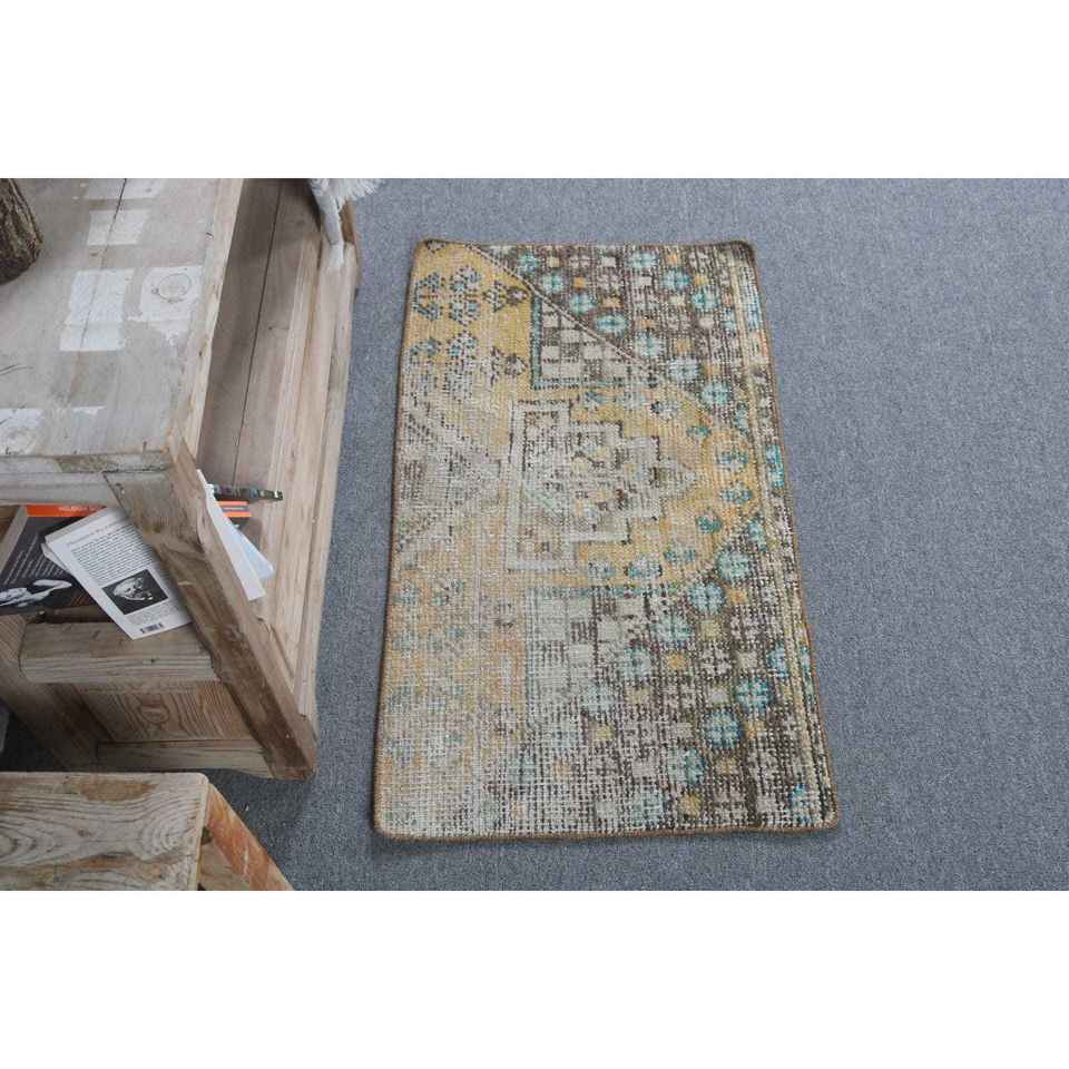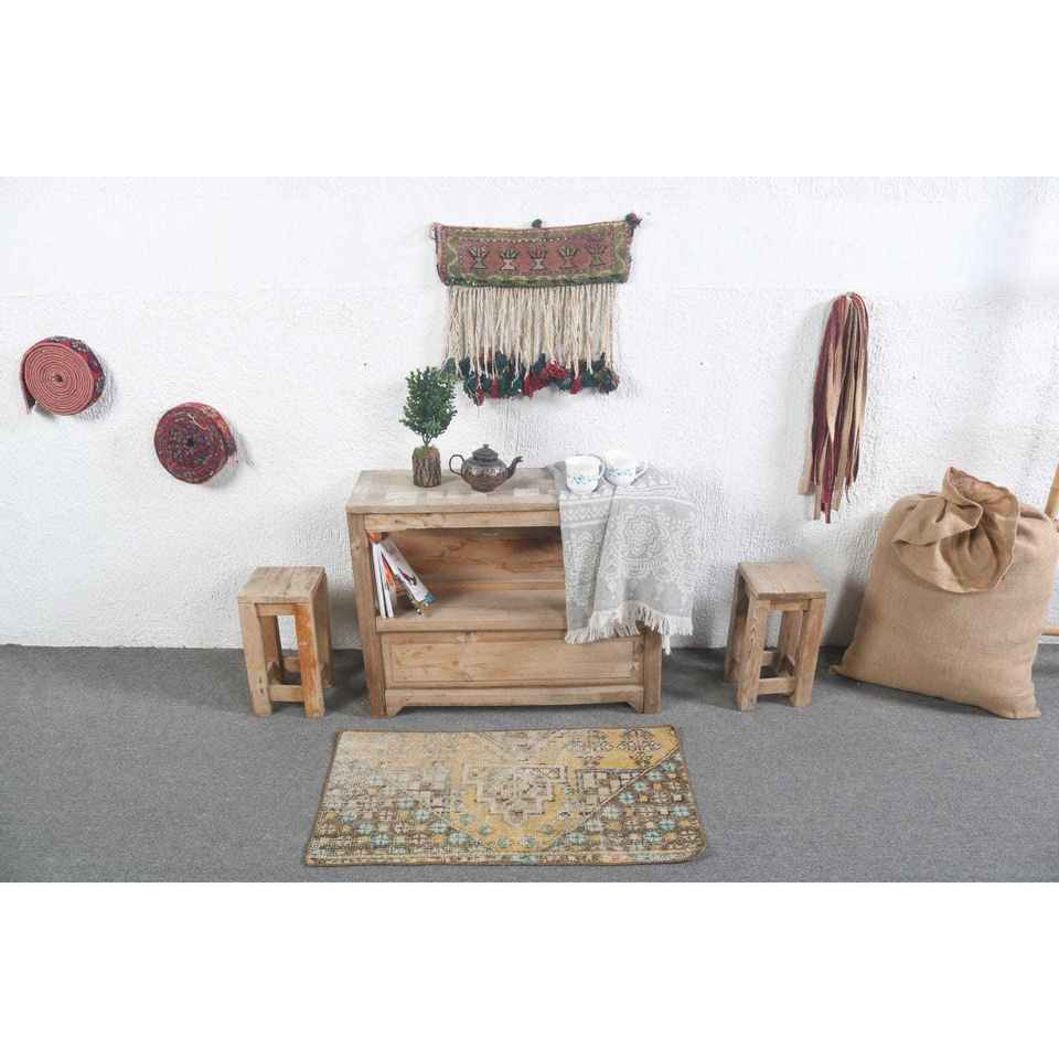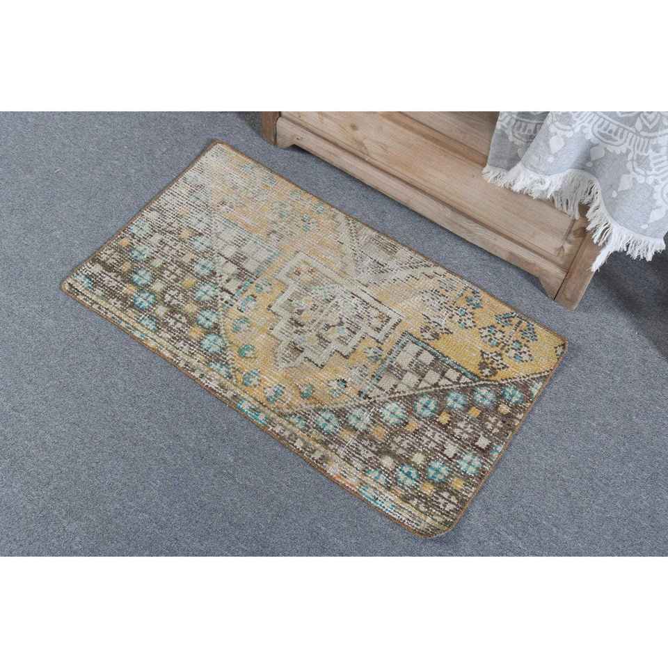 Alfombra Turca Vintage Pequeña de 1.6x2.9 pies, Alfombra de Lana Amarilla