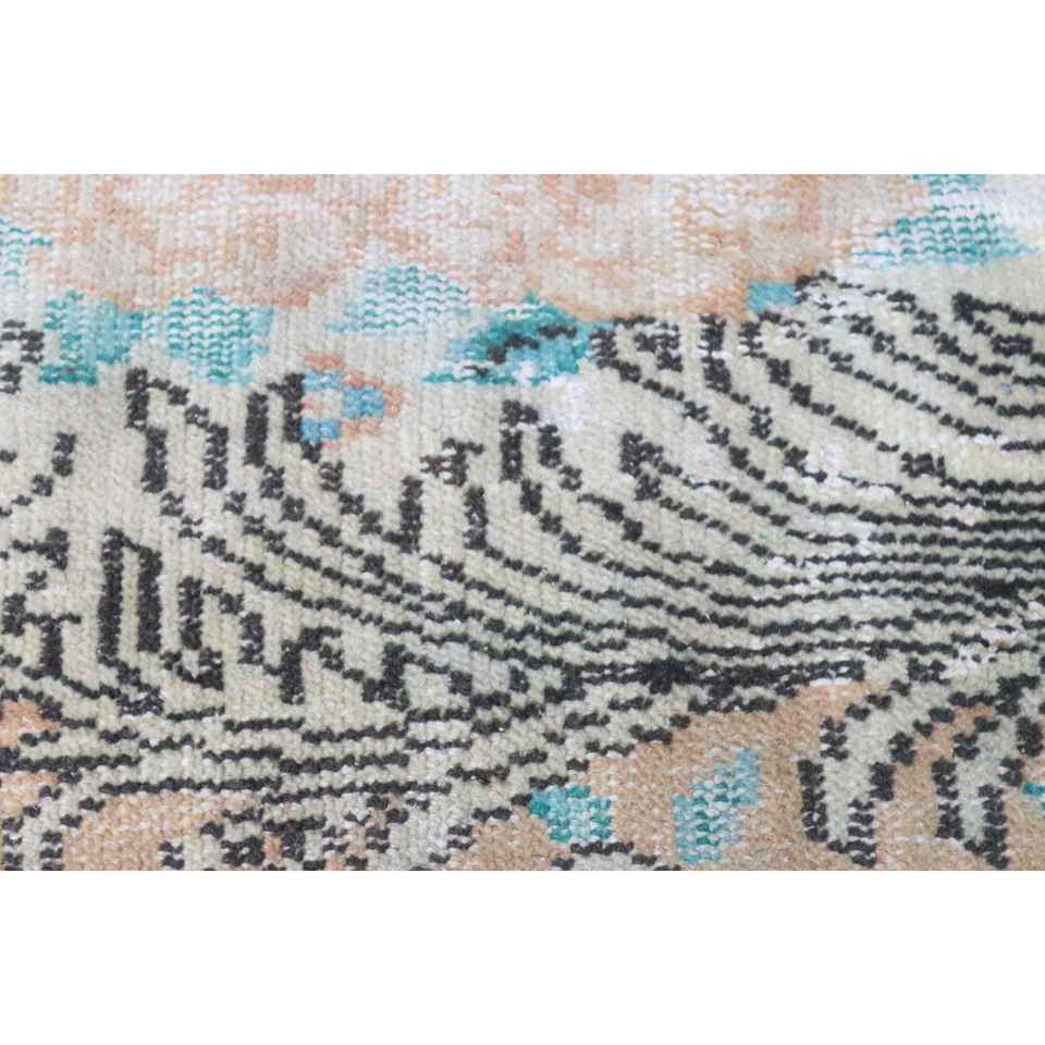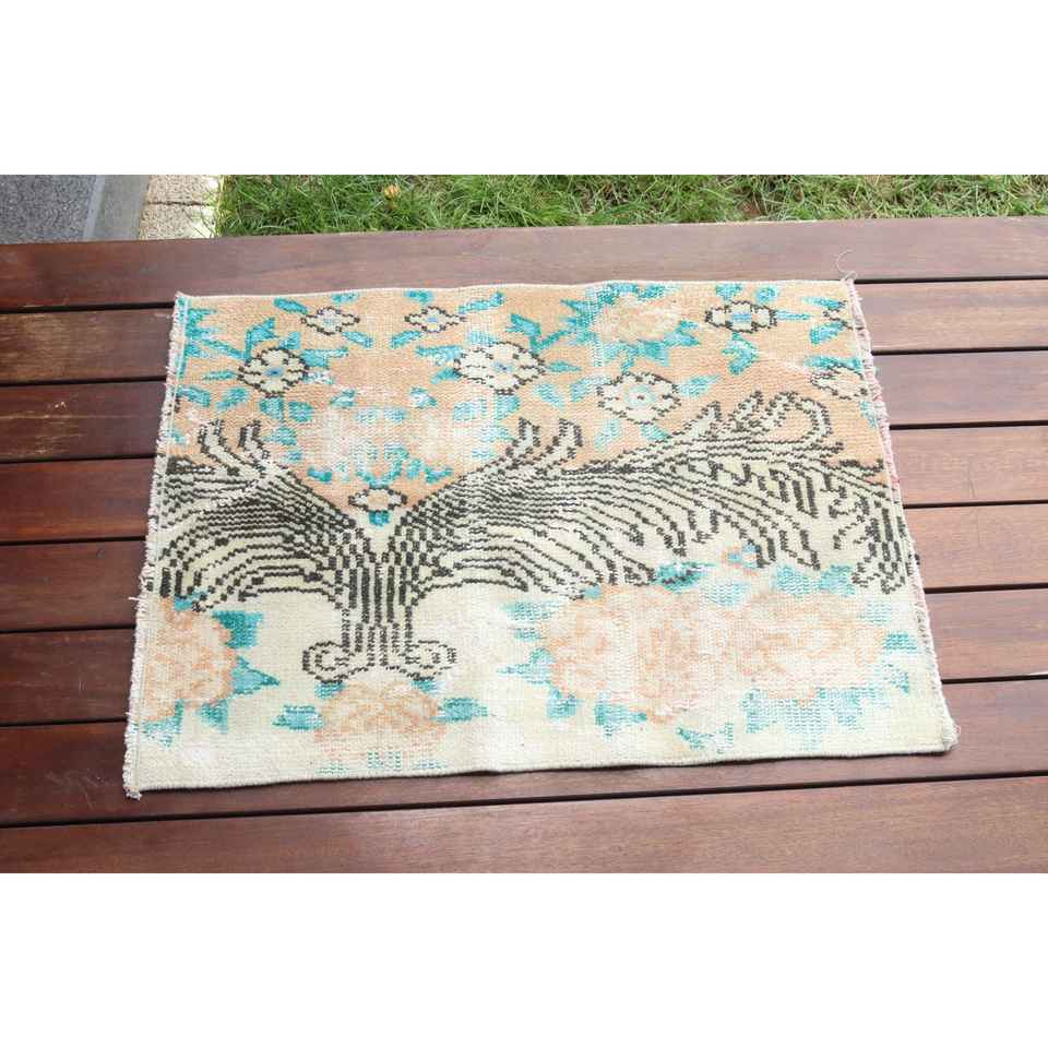 Alfombra Turca Vintage Pequeña de 1,7x2,5 pies, Alfombra Persa de Lana Azul Marrón