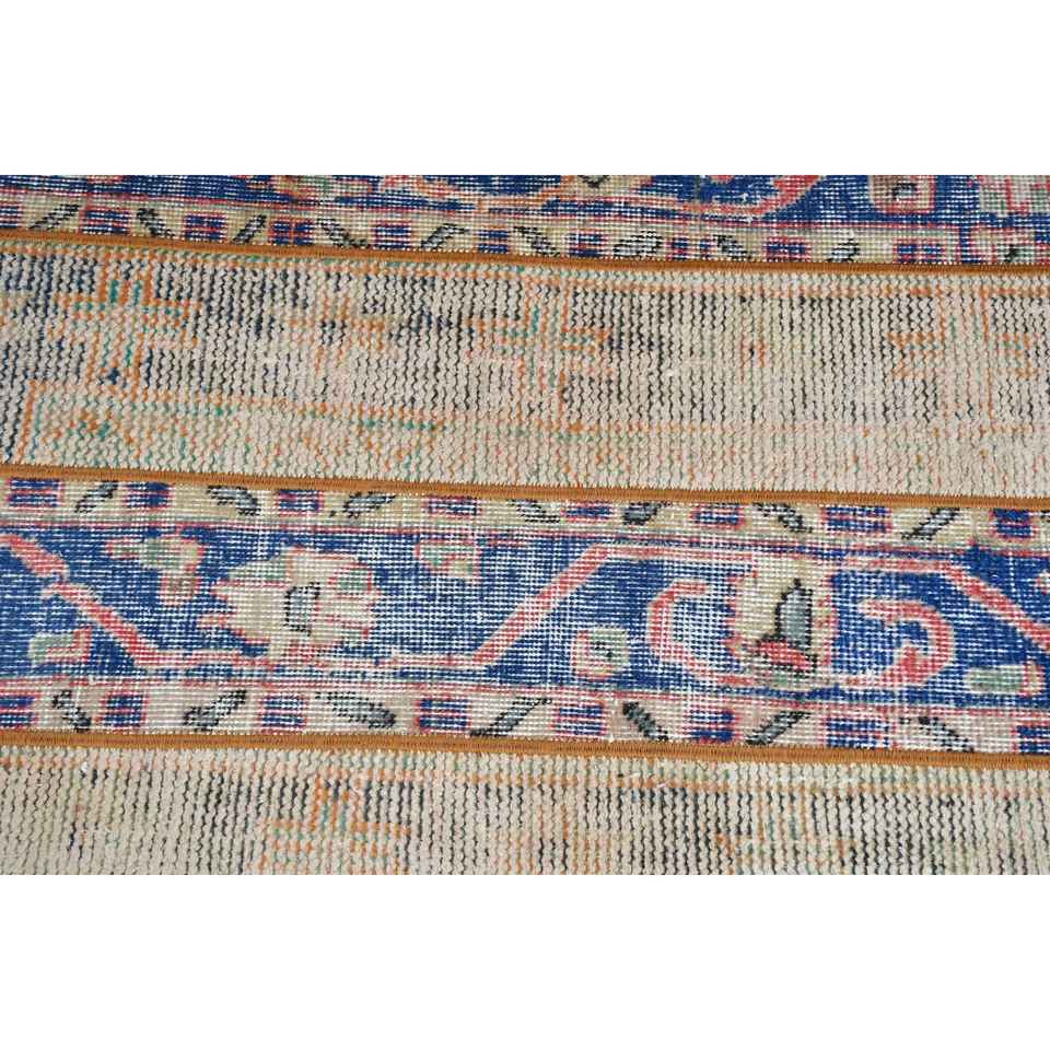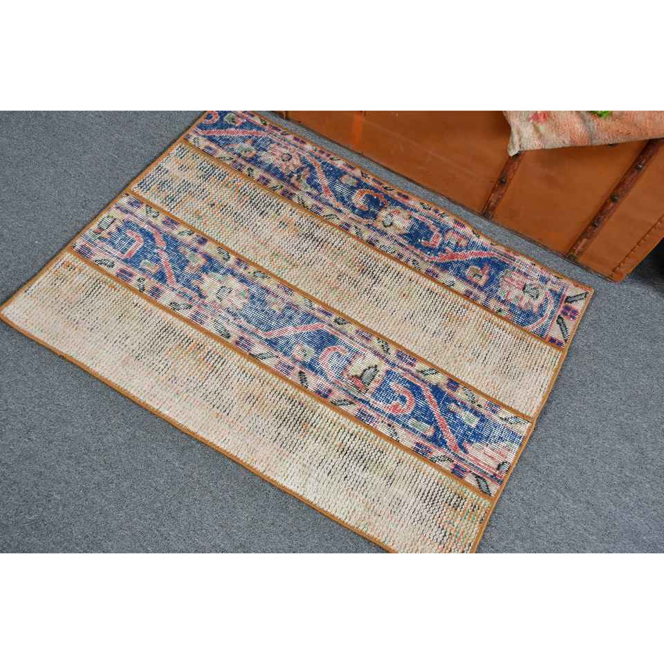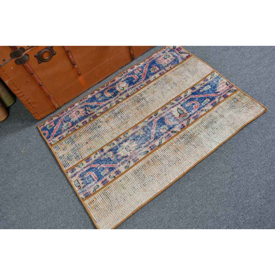 Alfombra Turca Vintage Pequeña de 2.4x3.2 pies, Alfombra de Lana Azul Blanca con Plantas y Árboles