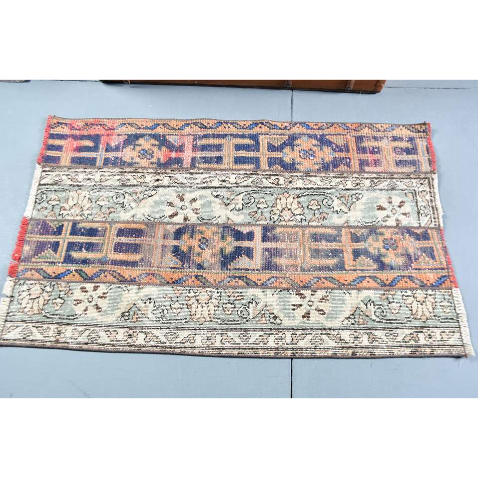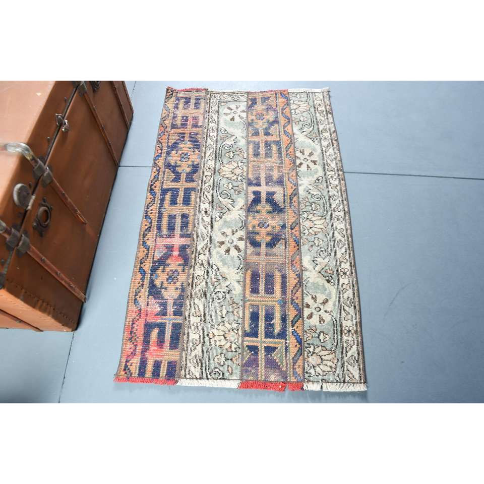 Alfombra Turca Vintage Pequeña de 2.5x4 pies, Alfombra Azul Sólida de Lana