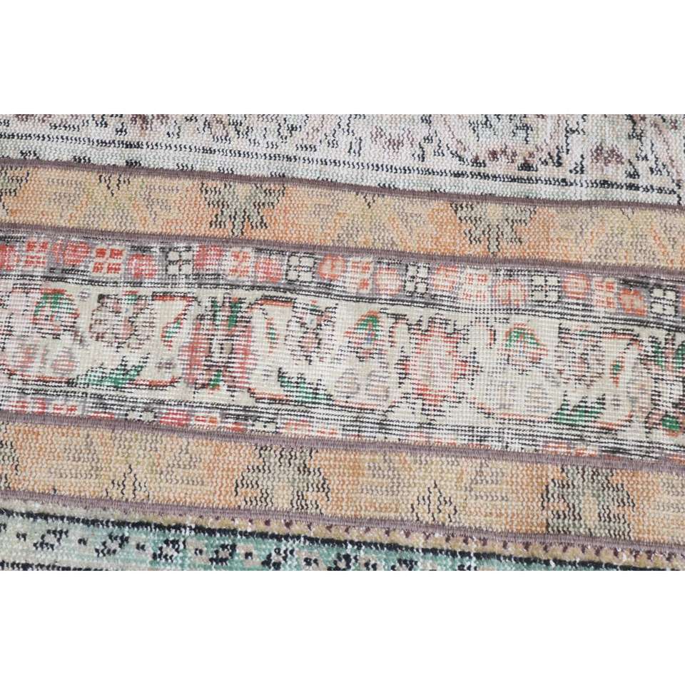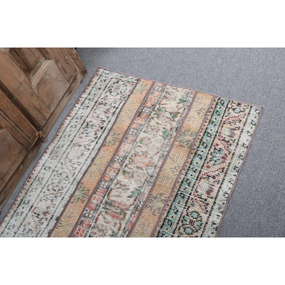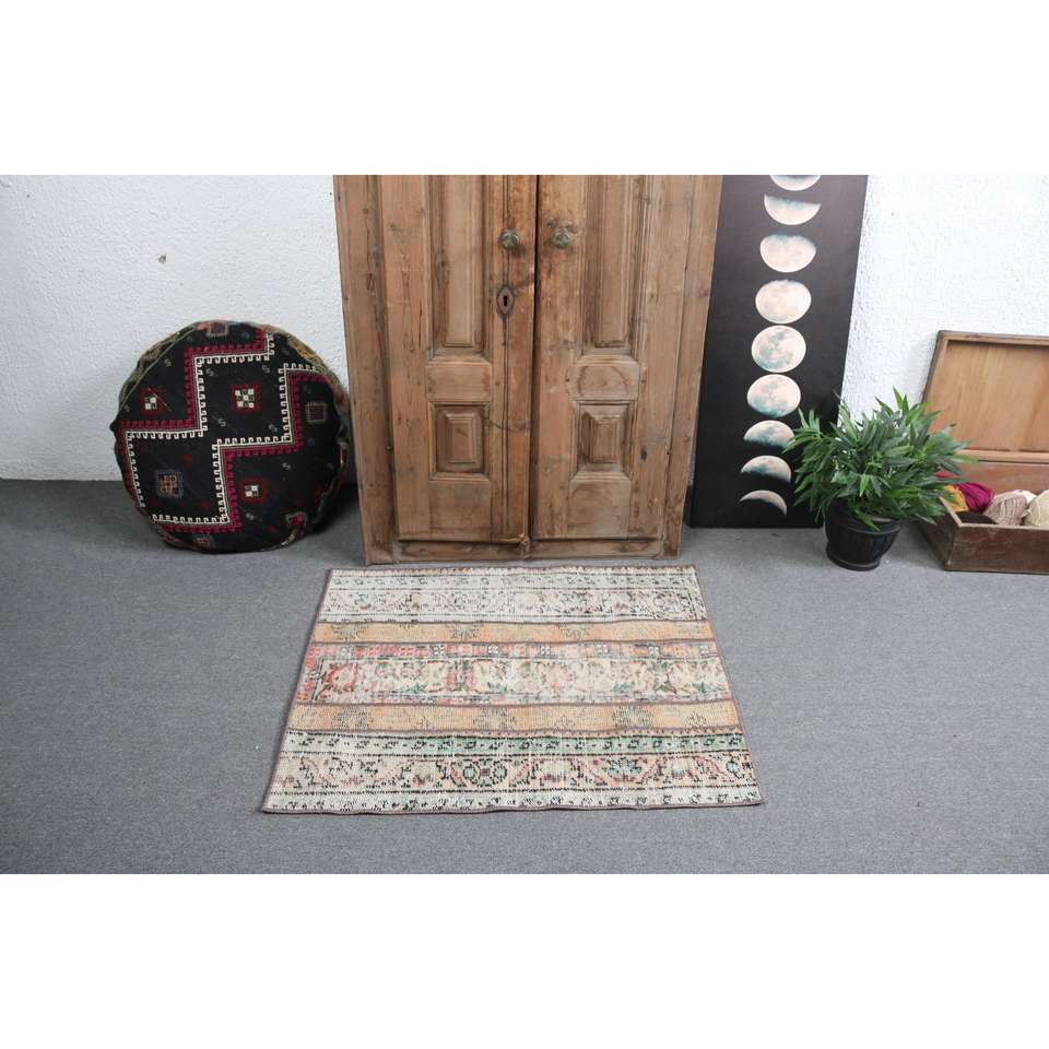 Alfombra Turca Vintage Pequeña de 2.7x3.2 pies, Alfombra de Lana Ikat Marrón Naranja