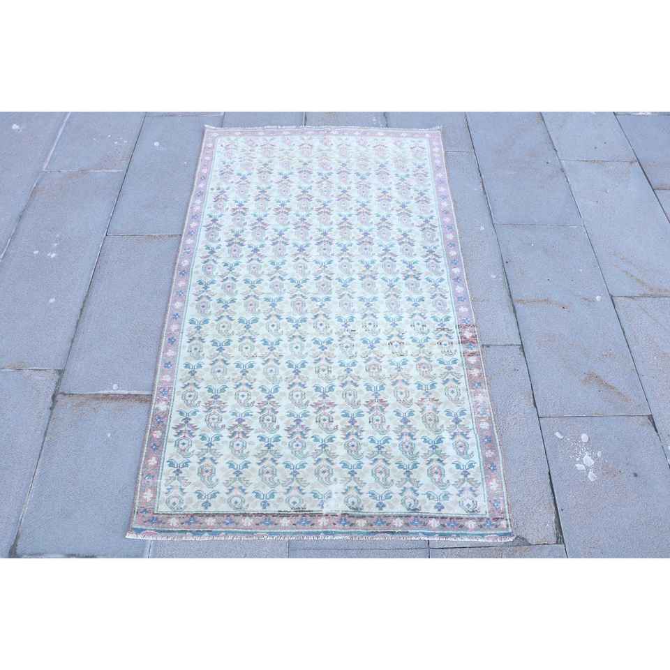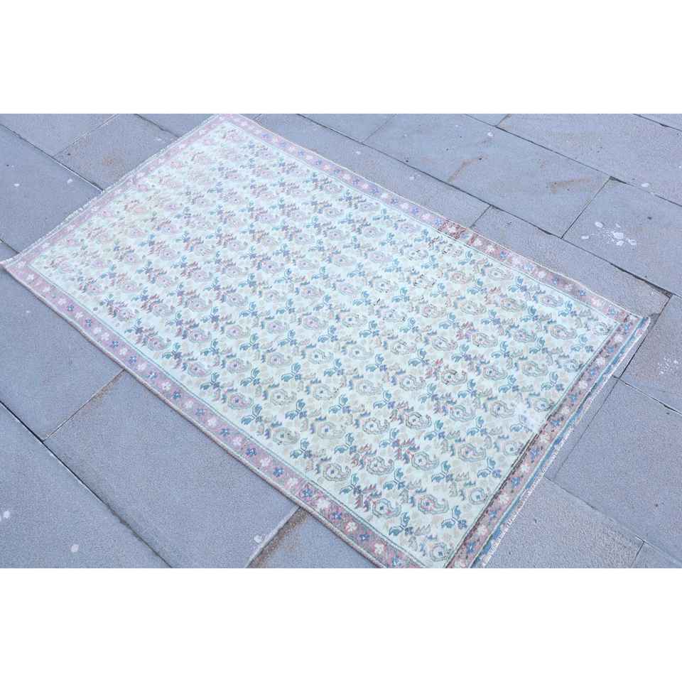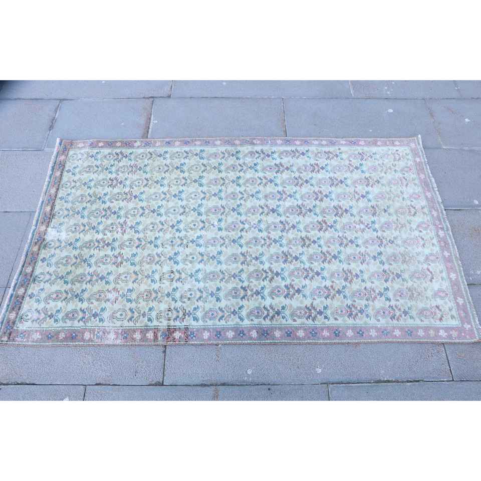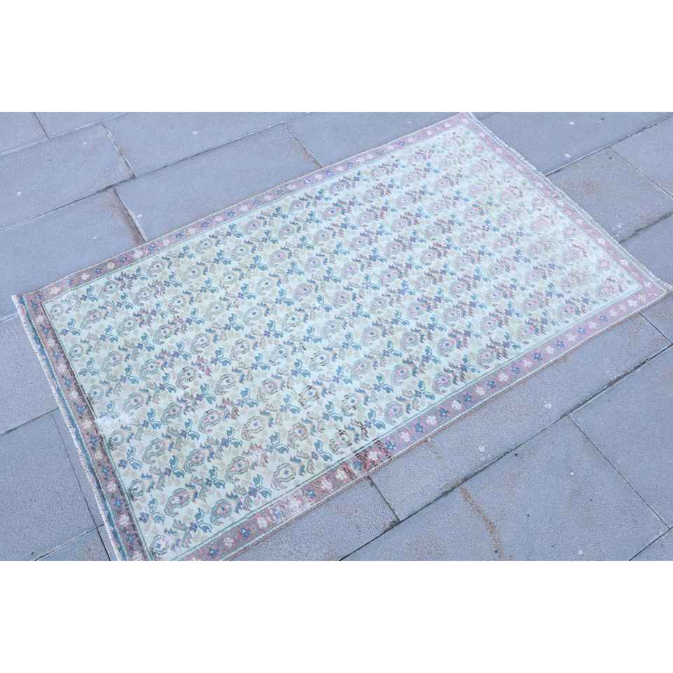 Alfombra Turca Vintage Pequeña de 2.8x4.7 pies, Alfombra con Diseño de Plantas y Árboles en Azul y Rosa