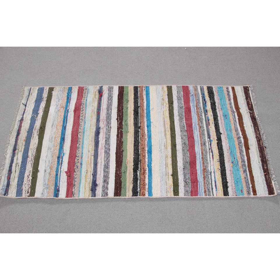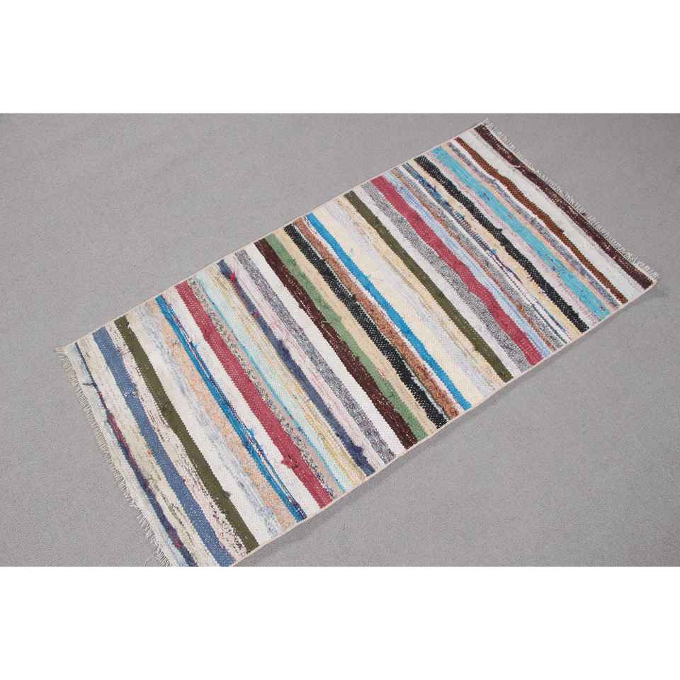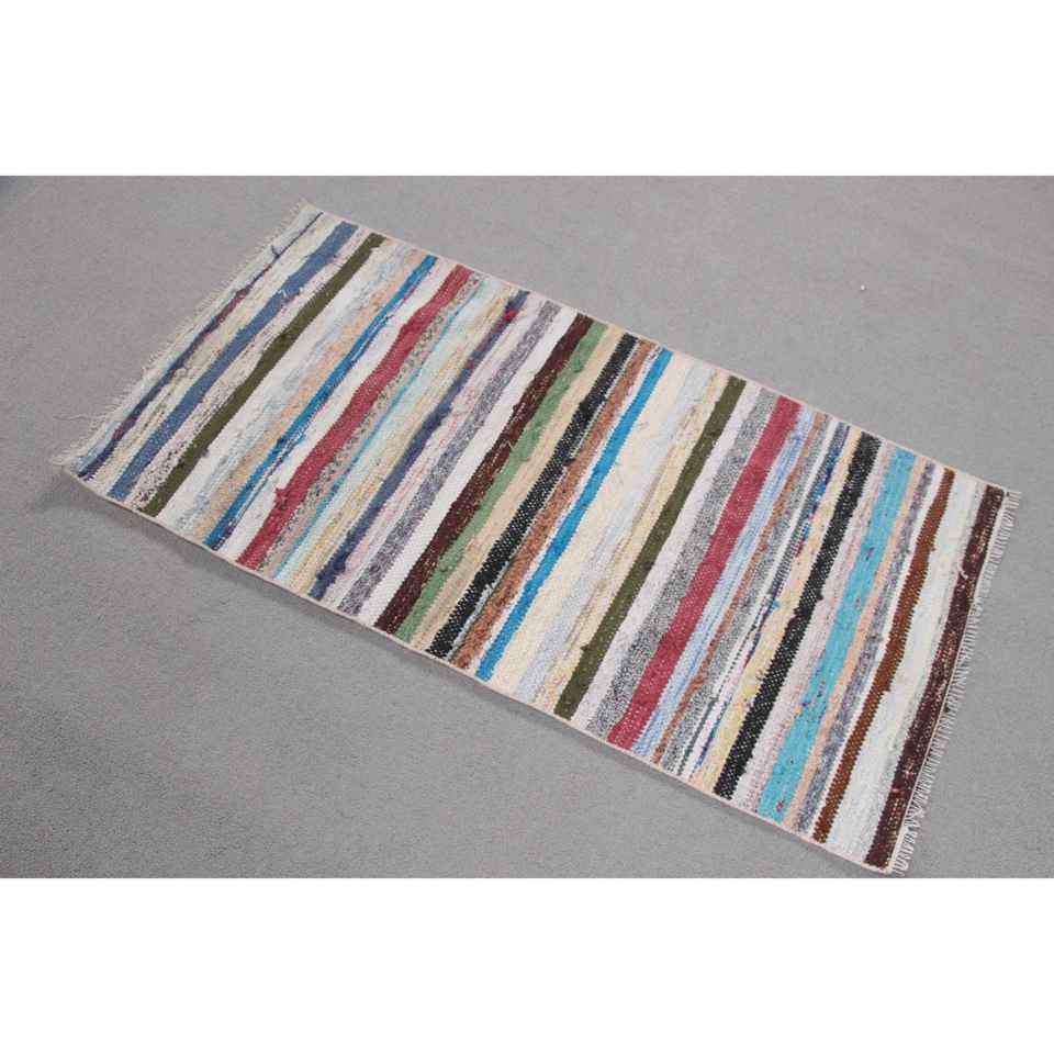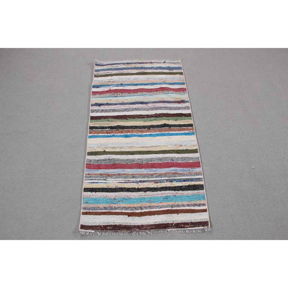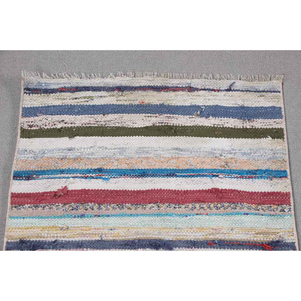 Alfombra Turca Vintage Pequeña de 2x3,9 pies (62x118 cm), Alfombra Kilim Azul Ombré