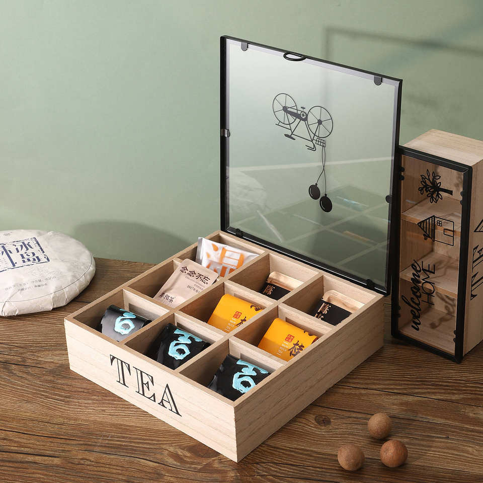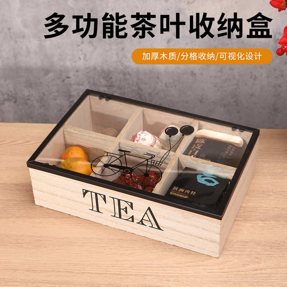 Caja de Almacenamiento de Té de Madera con Tapa y 6 Compartimentos para Organización de Escritorio en Casa u Oficina