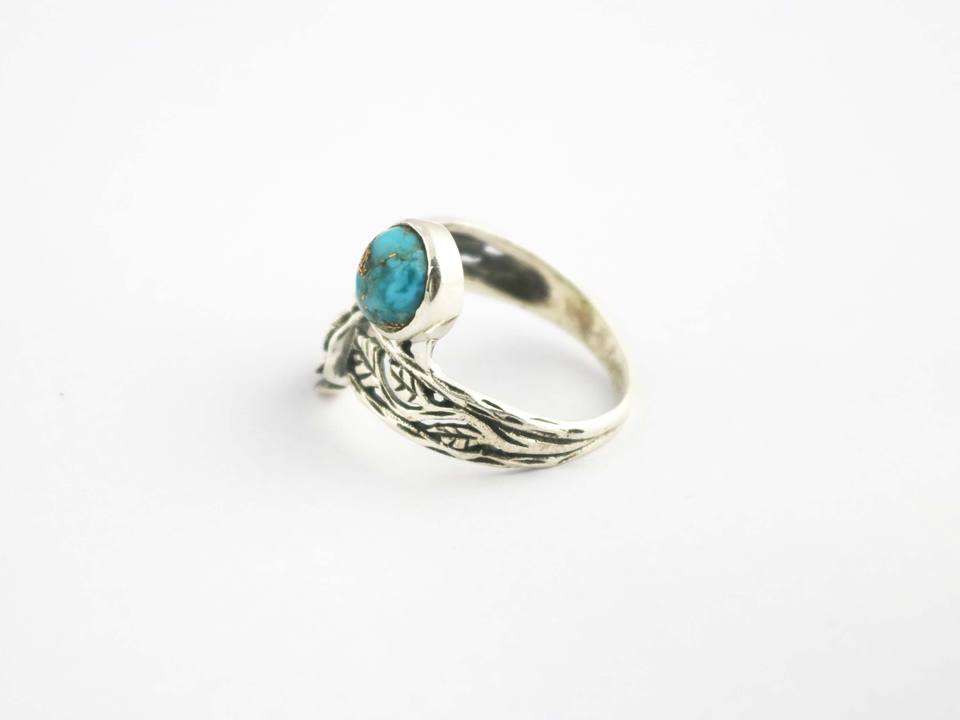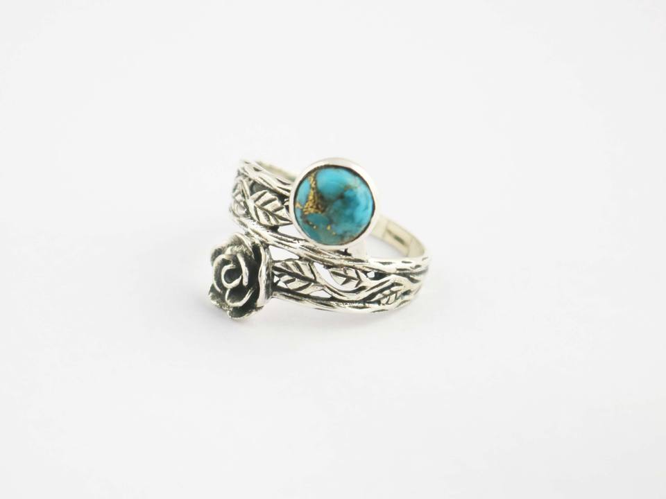 Anillo de Plata de Ley 925 con Turquesa Ostra Hecha a Mano con Diseño de Flor para Mujer