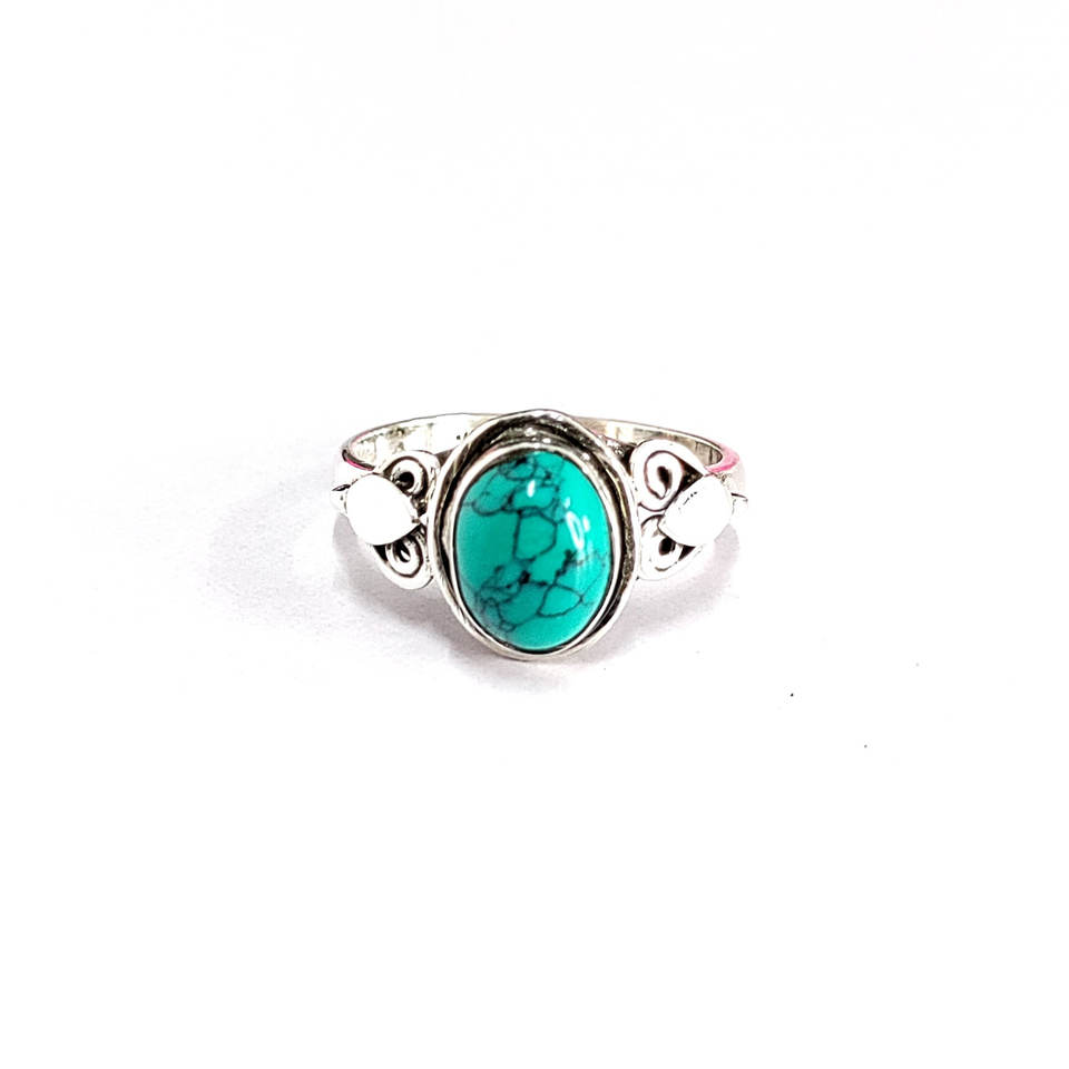 Anillo de Plata de Ley 925 con Turquesa Ovalada, Diseño Antiguo, Proveedor al por Mayor