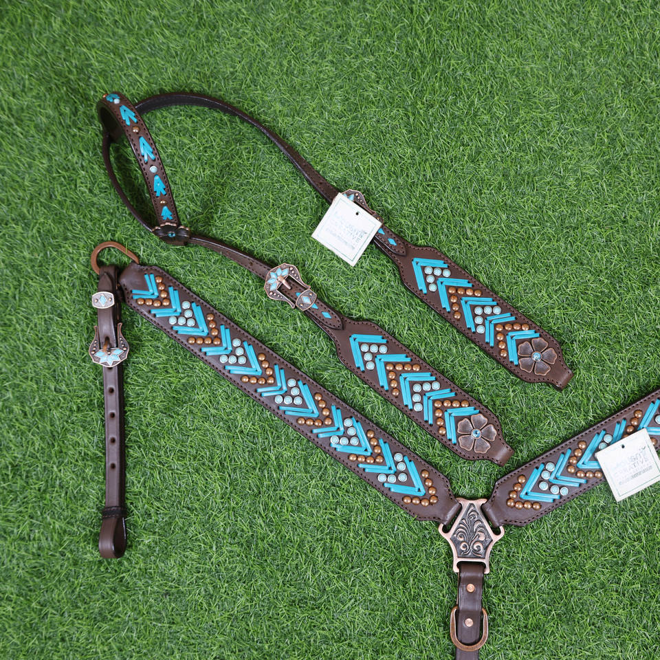 Conjunto Western Headstall & Breast Collar, Western Tack Set para Caballo, Cuero Headstall conjunto, Piel de Vaca Argentina Western Tack, Headstall hecho a mano y cuello del pecho, Tack set para caballoTipo
