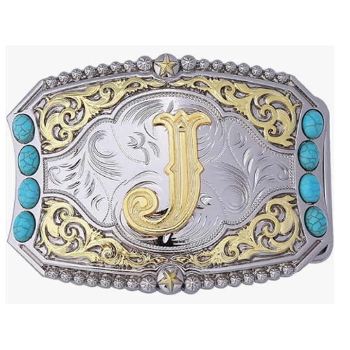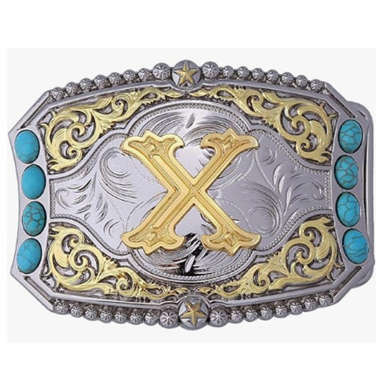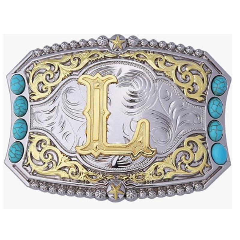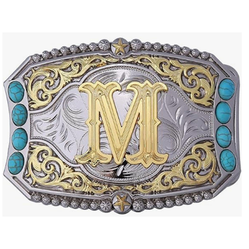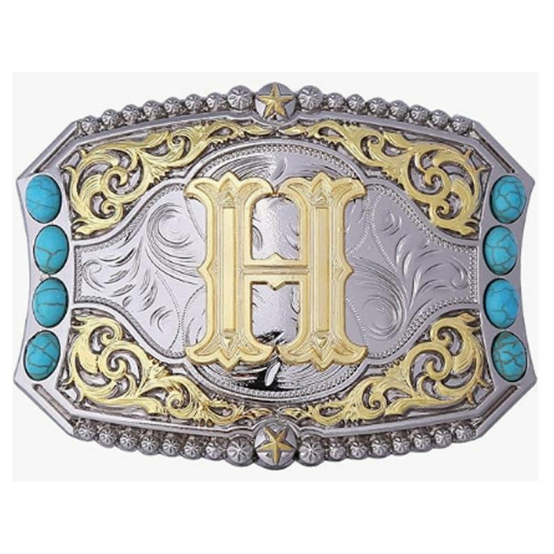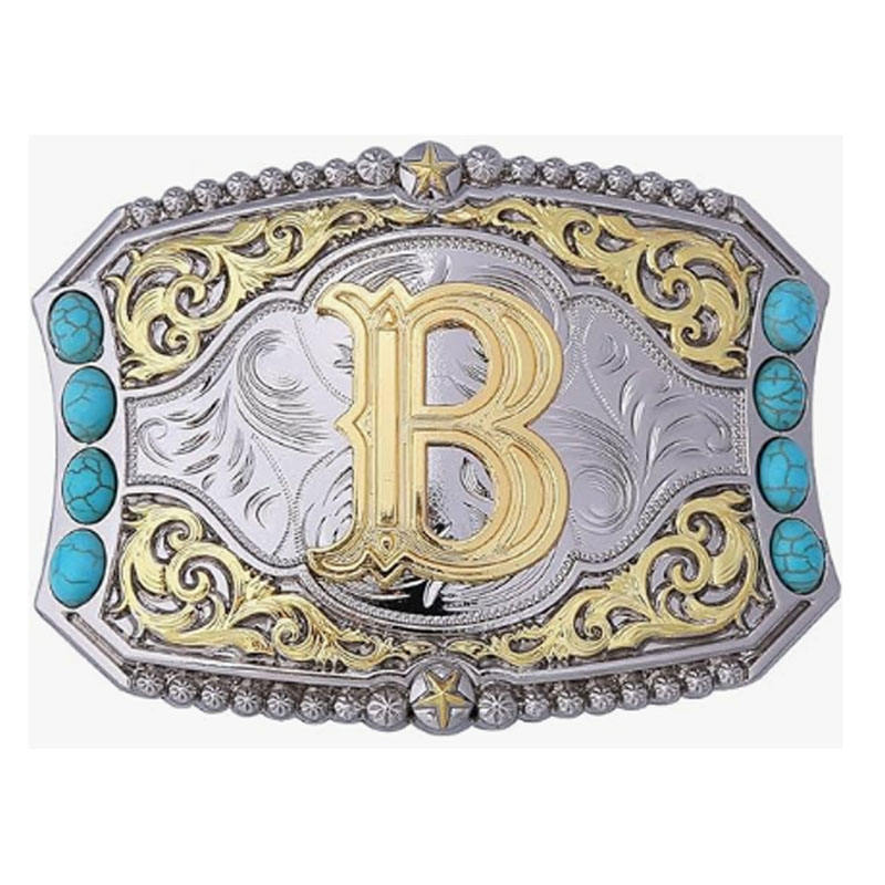 Hebilla de Cinturón Turquesa Estilo Vaquero Occidental con Iniciales de la A a la Z para Hombre