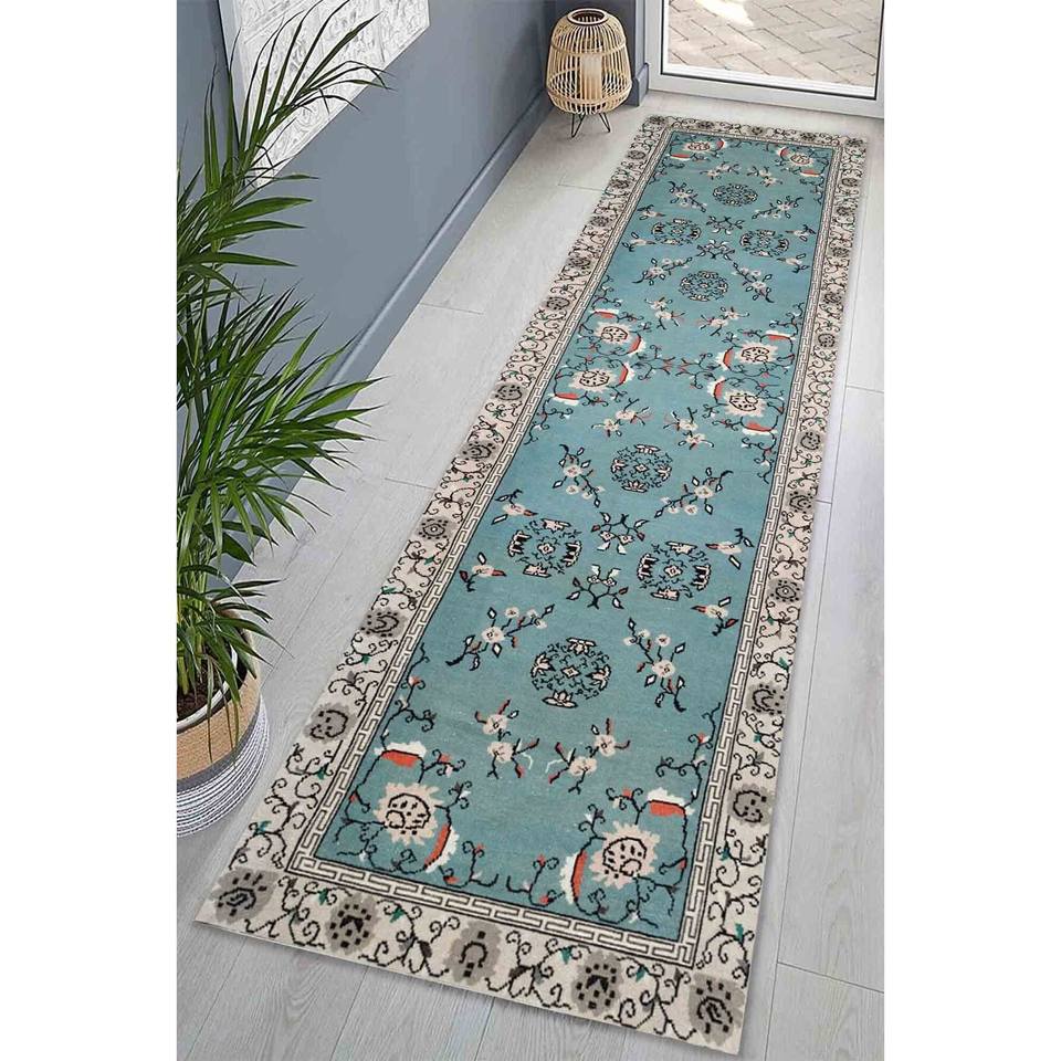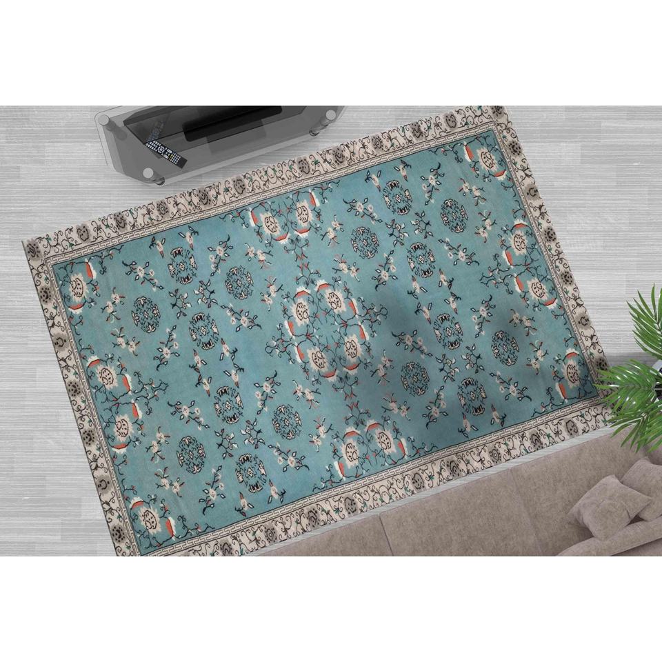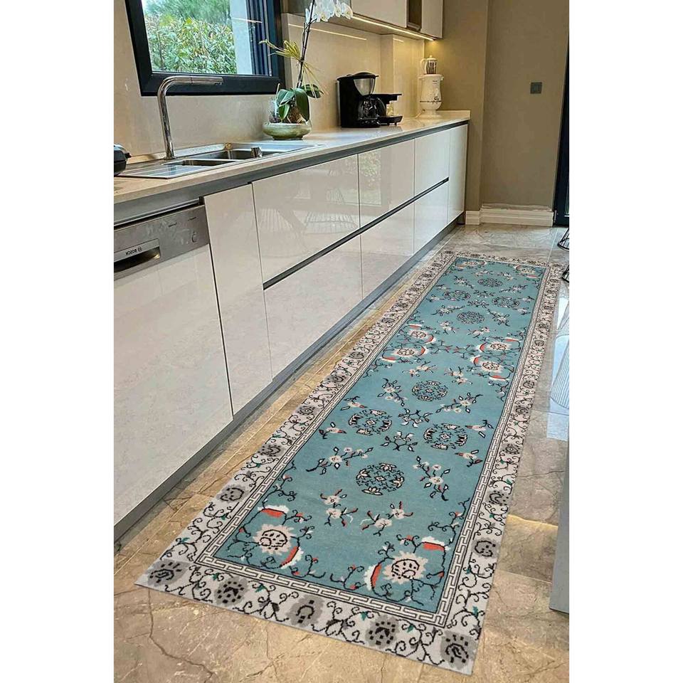 Alfombra de Chenilla Turquesa: Diseño Marroquí, Alfombra Antideslizante, con Pelo Suave