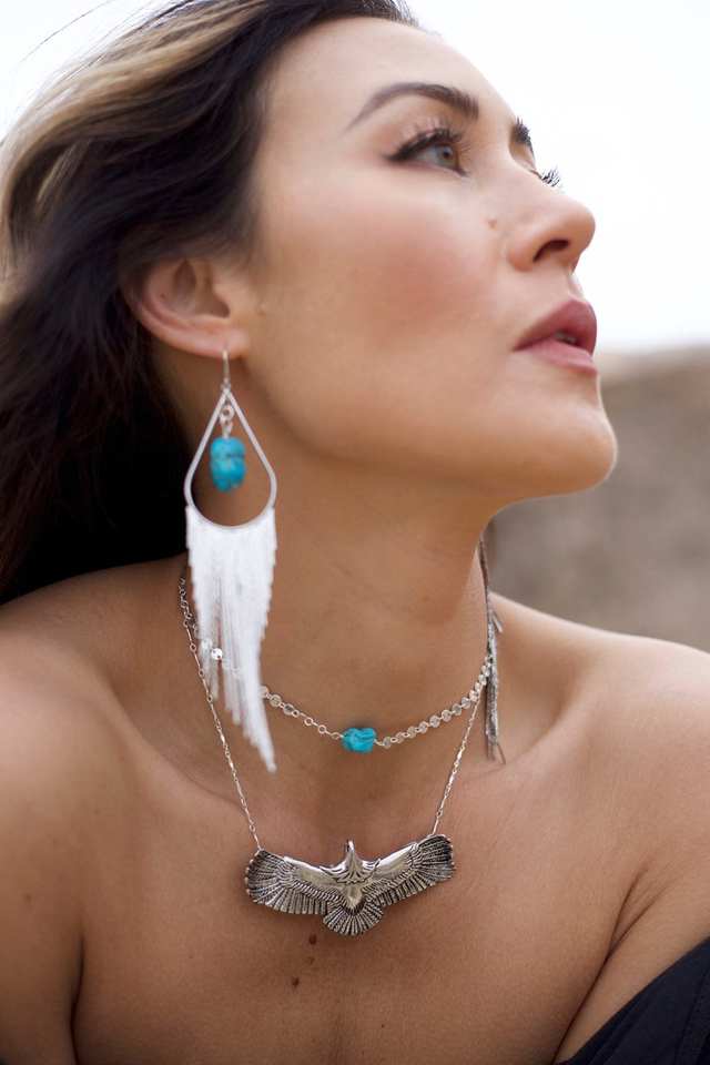 Pendientes Largos de Plata de Ley con Cristal Turquesa y Baño de Oro, Diseño de Flecos, para Bodas y Fiestas