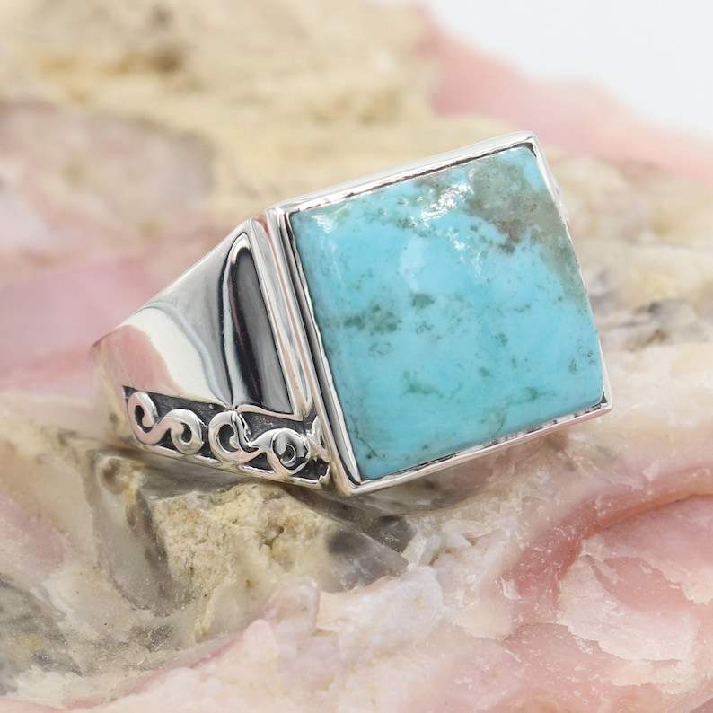 Anillo de hombre turquesa, anillo para hombre, anillo de plata esterlina sólida, anillo hecho a mano para él