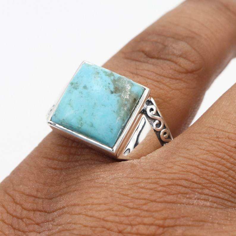 Anillo de hombre turquesa, anillo para hombre, anillo de plata esterlina sólida, anillo hecho a mano para él