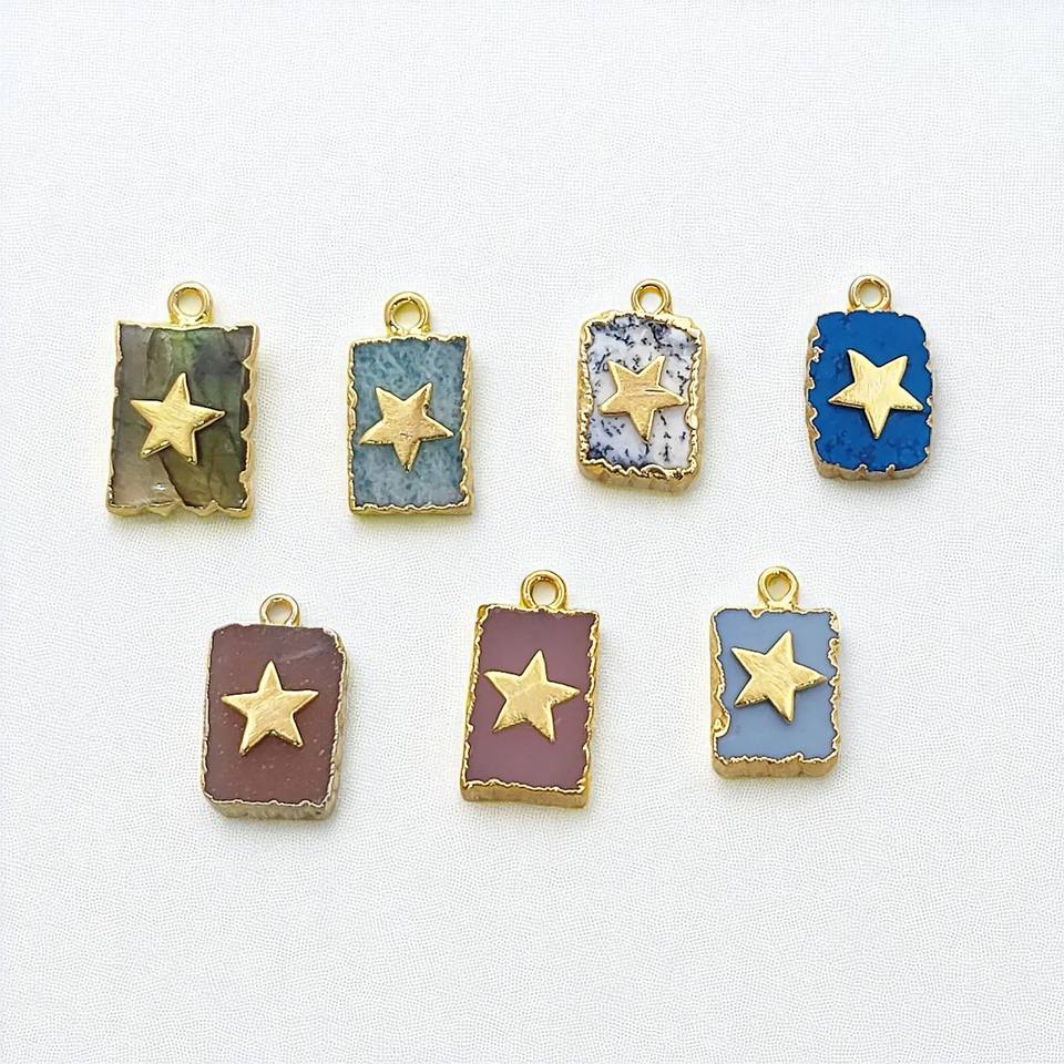 Nombre del Producto:Colgante de rebanada galvanizada con piedras preciosas y dije de estrella