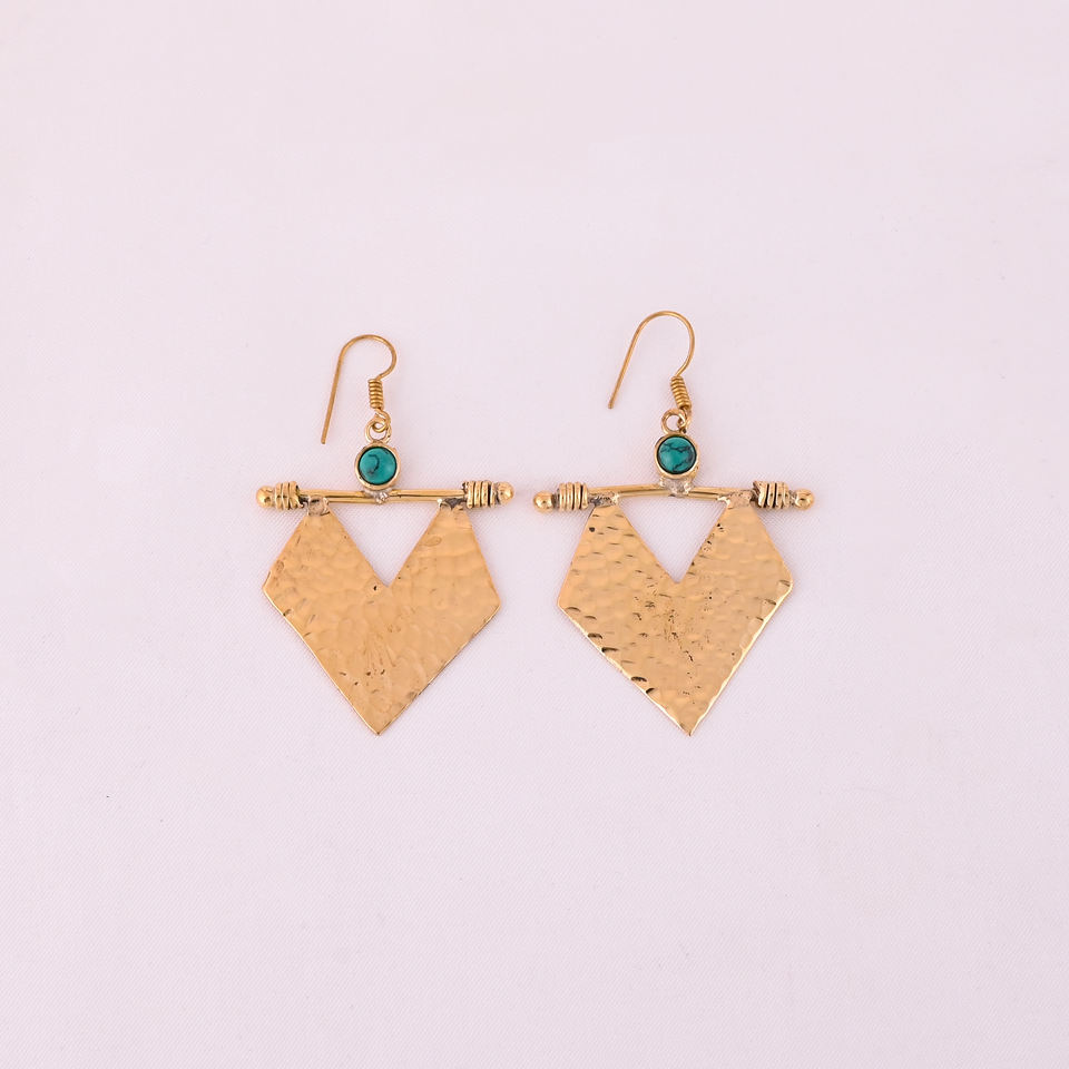 Nombre o palabras:Gold Plated Chevron Earrings With Green Onyx Stone