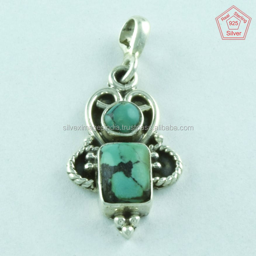 Colgante hermoso de piedra turquesa, joyería de plata hecha a mano, proveedor de joyería de plata de la India, colgante de Plata de Ley 925 DE LA India