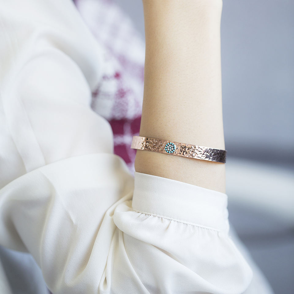 Brazalete con ojo redondo de piedra turquesa, hecho a mano, Plata de ley turca martillada, venta al por mayor