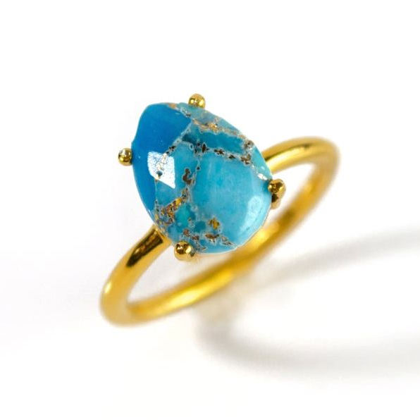 Nombre del producto:Anillo Turquesa en Forma de Lacrimal Vermeil de Oro