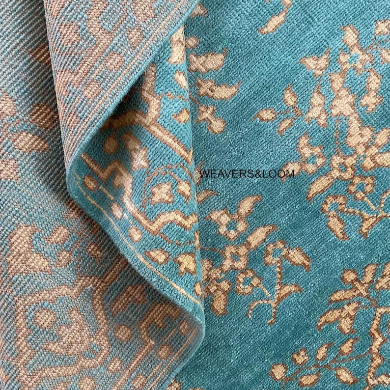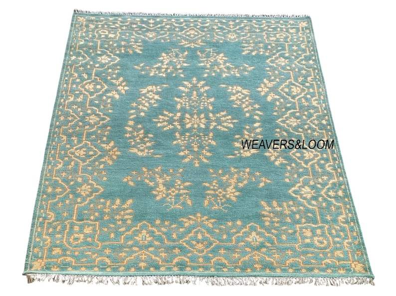 Alfombra Oushak Azul Turquesa Anudada a Mano, Alfombra Oriental de Lana, Alfombra Vintage, Alfombra Turca Boho para Sala de Estar