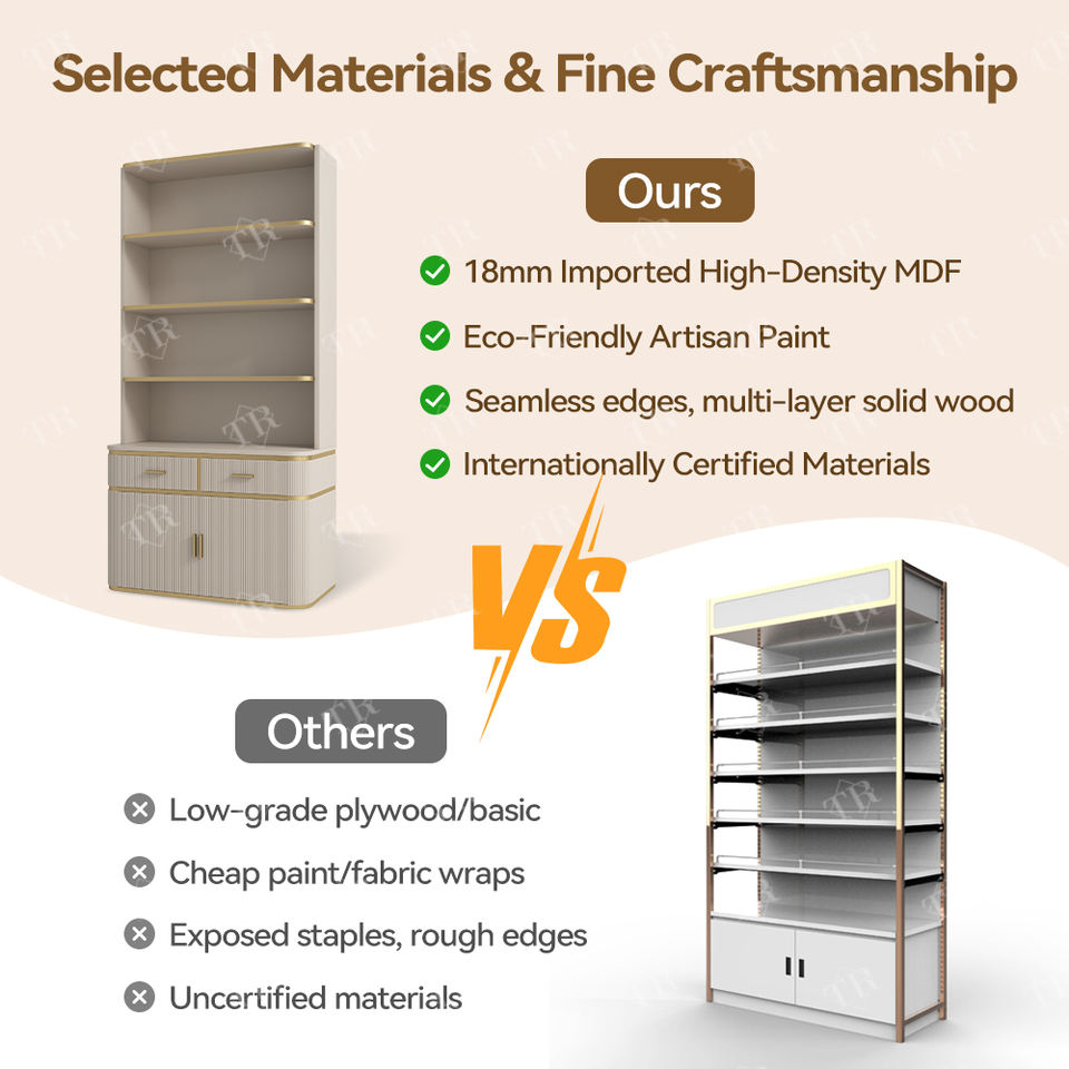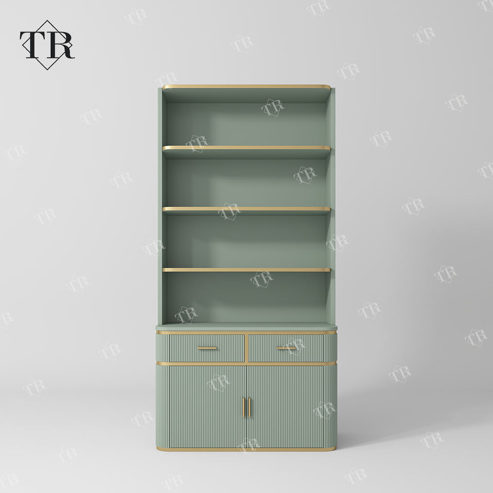 Turri Boutique Display Beauty Salon Rack Góndola Estantería Suministros Accesorio de piso Gabinete Estante de exhibición de madera