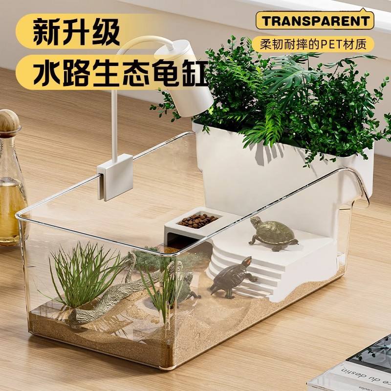Tanque para Tortugas Rectangular de Plástico, Hábitat Acuático con Plataforma para Tomar el Sol, para Tortugas Rojas y Peces Pequeños