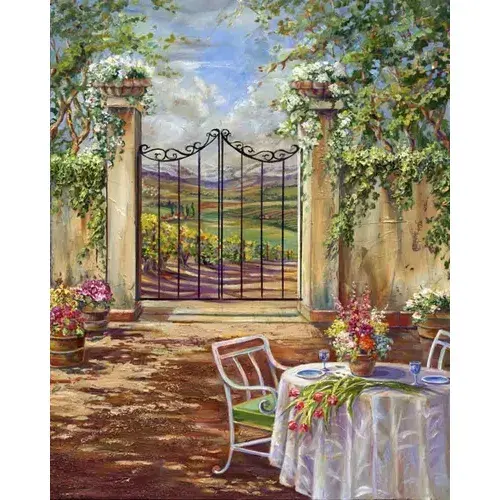 Decoración de acento Toscano, azulejo, arte de paisaje de cocinero de jengibre, pinturas únicas GCS041AT para decoración al aire libre