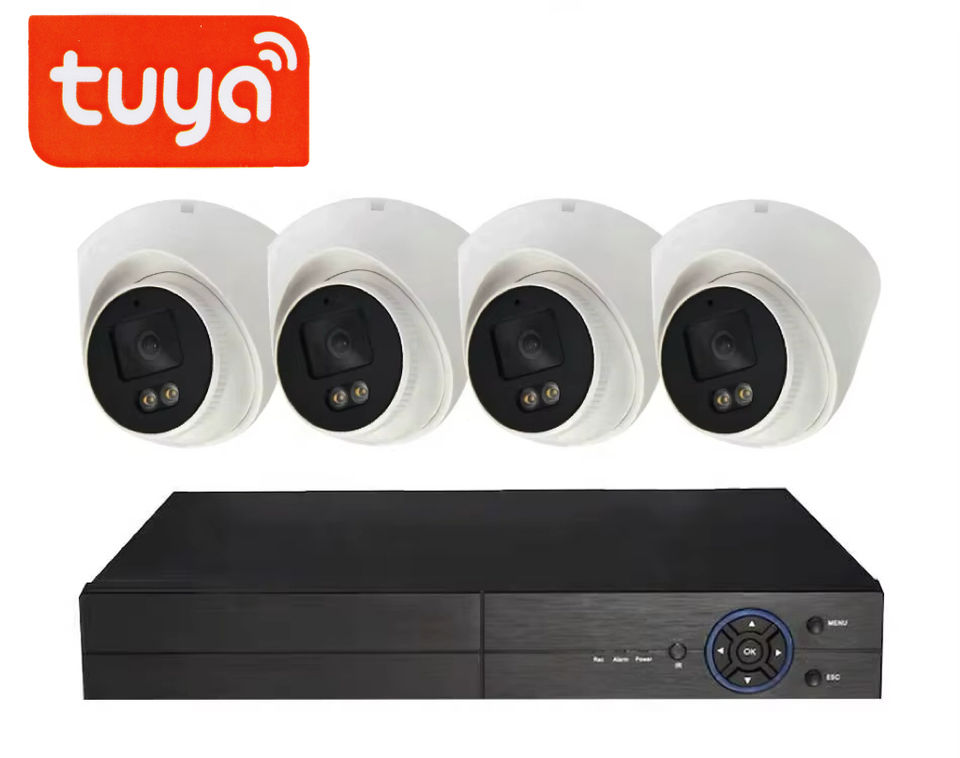 Kit de Cámara de Seguridad Tuya Smart, Cámara IP POE Tipo Domo para Interiores, 4MP 6MP 8MP, Sistema Completo HD, NVR POE de 4 Canales, Precio de Fábrica