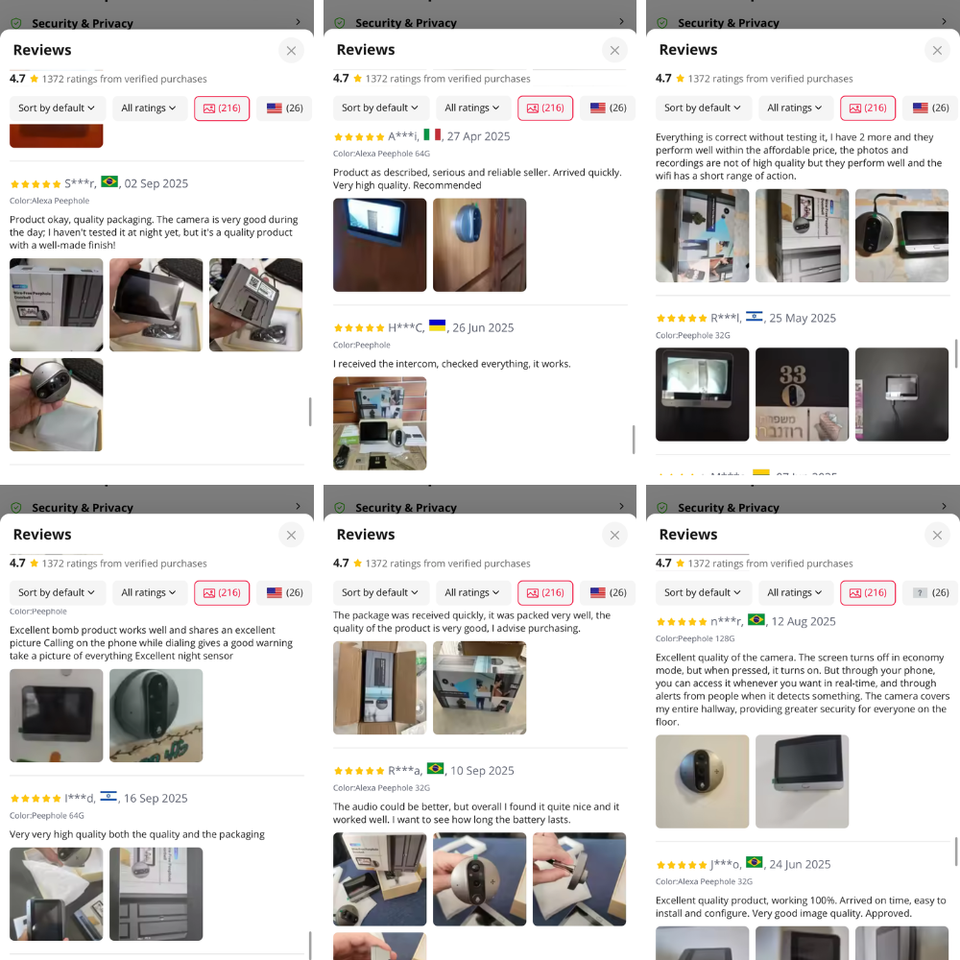Grosor de la puerta:Videoportero con mirilla Wifi de 35-145 mm