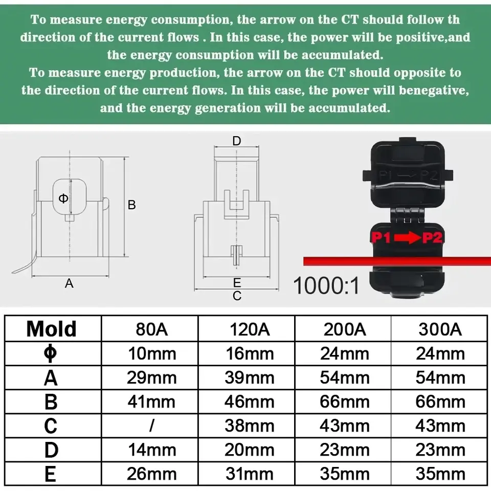 Rango de medición de energía:80a/120a/200a/300a