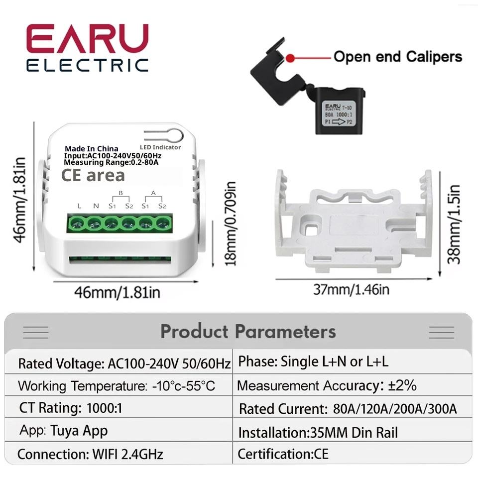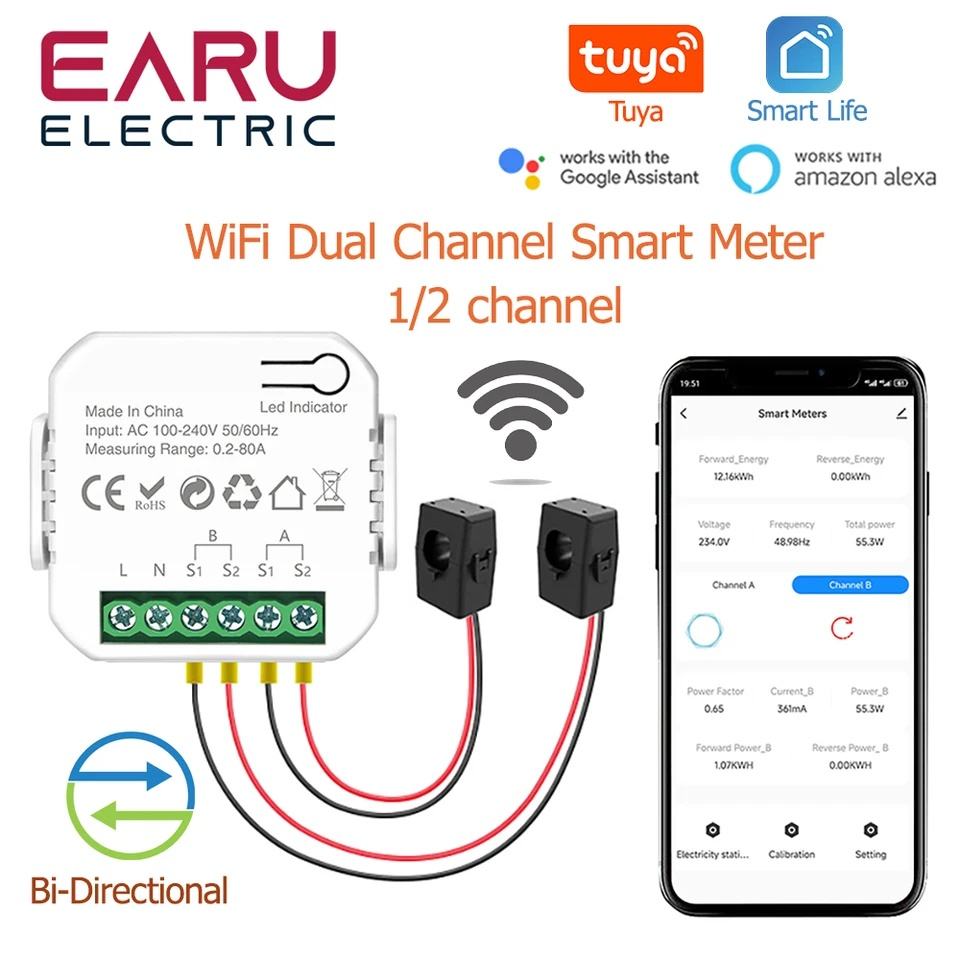 Medidor de Energía Inteligente Tuya, Medición Bidireccional, Transformador de Corriente de 1 o 2 Canales, Monitor de Energía por Aplicación, 80A 120A EASEM-F