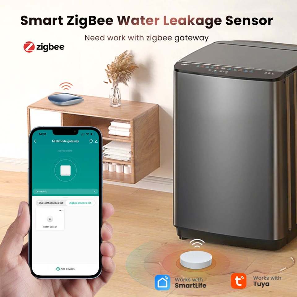 Tuya Smart IP67 inalámbrico ZigBee Detector de fugas de agua Material ABS Sensor de alarma para detección de inundaciones funciona Alexa Asistente de Google