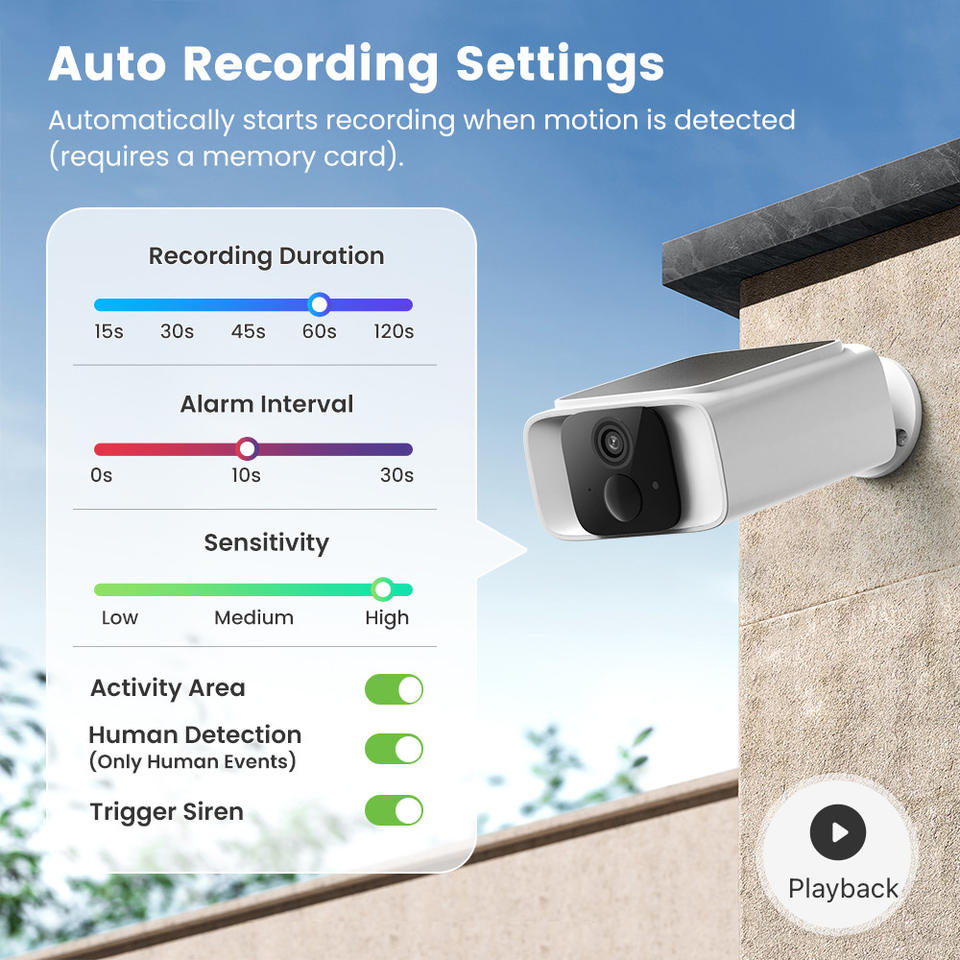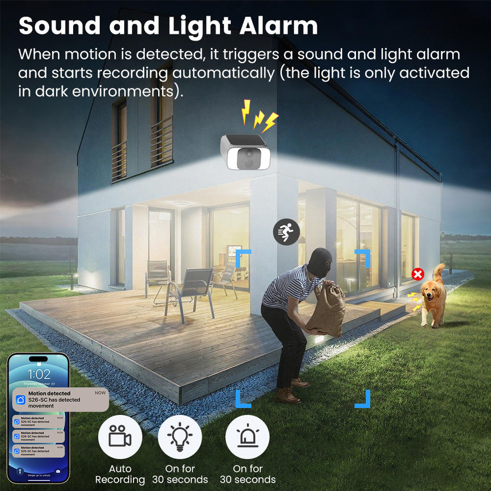 Construido-En sirena, Visión nocturna, De Audio de dos vías, Detección de movimiento, Impermeable / a prueba de mal tiempo, Detección de personas, Detección PIRCaracterísticas especiales
