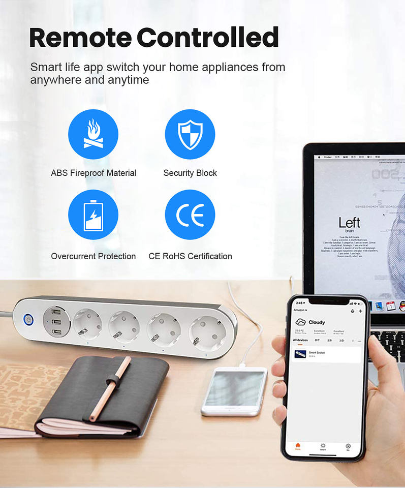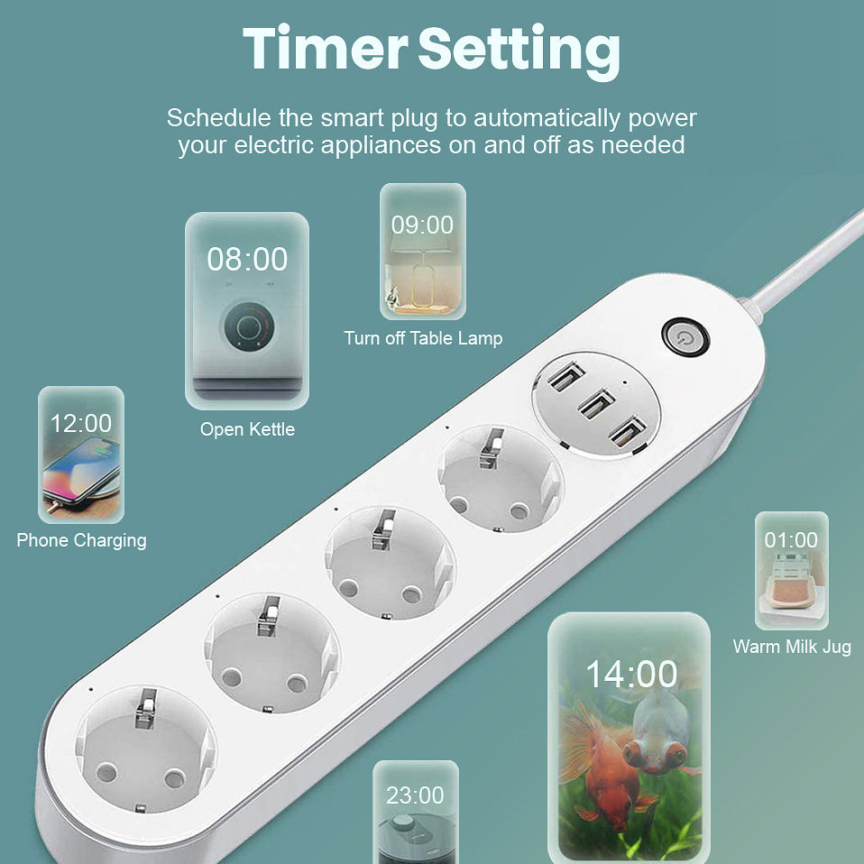 Enchufe USB inteligente Tuya, enchufe Wifi multifunción para interruptor de teléfono móvil, sincronización, regulación europea/estadounidense, corriente nominal de 10A