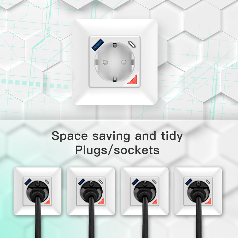Enchufe Inteligente WiFi Tuya con Temporizador de Voz, Enchufe de Pared Europeo con Carga Rápida USB QC3.0 Tipo C PD20W