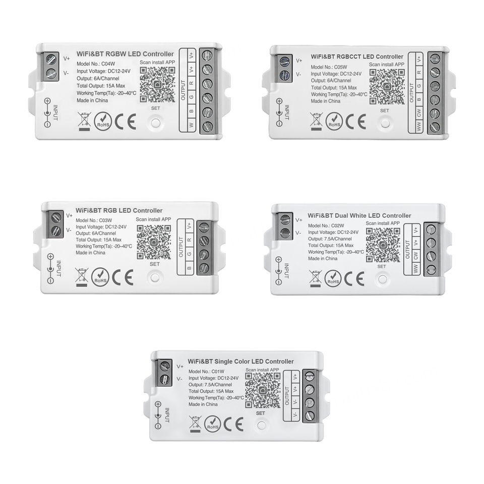Controlador LED WiFi Tuya con Bluetooth, Compatible con Alexa y Google Home, Control por Voz, Tira LED RGB/RGBW/CCT, Interruptor Inteligente Controlado por Aplicación, DC12-24V