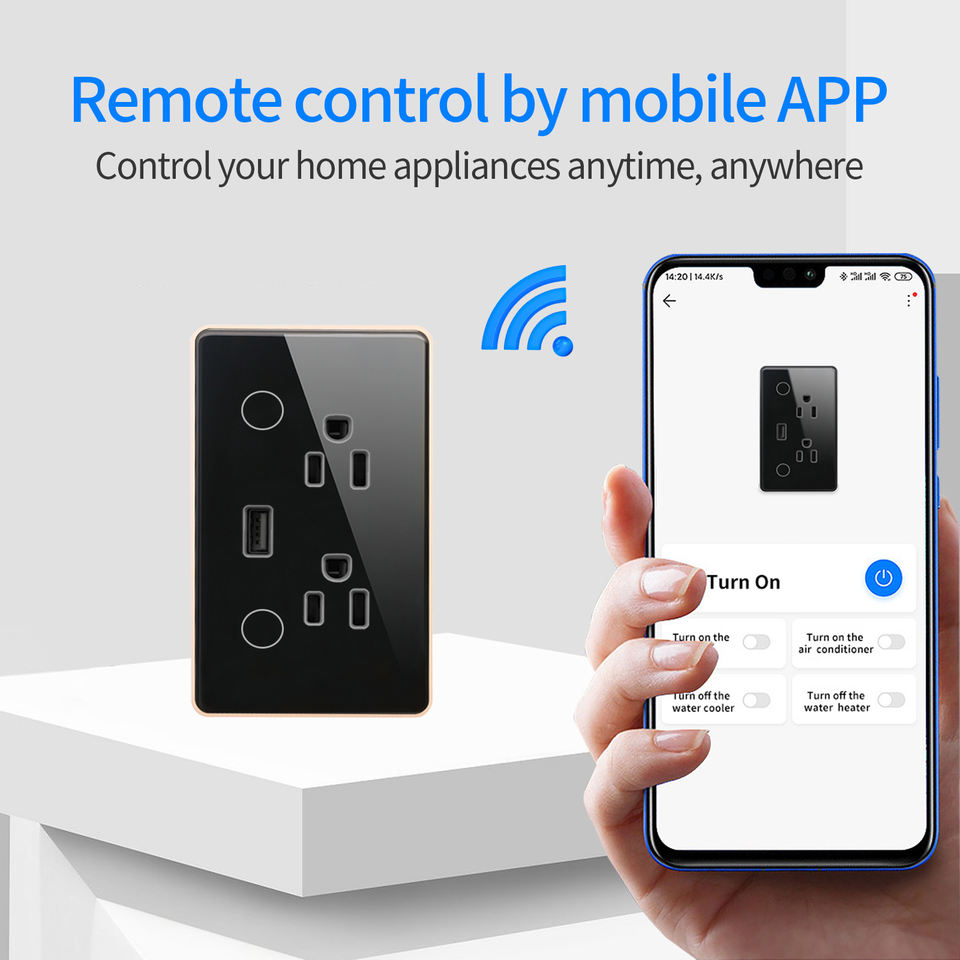 Interruptor de pared táctil inteligente Tuya WiFi con doble toma USB, Zigbee, potencia 16A (vidrio) y 10A (ABS), estándar USA